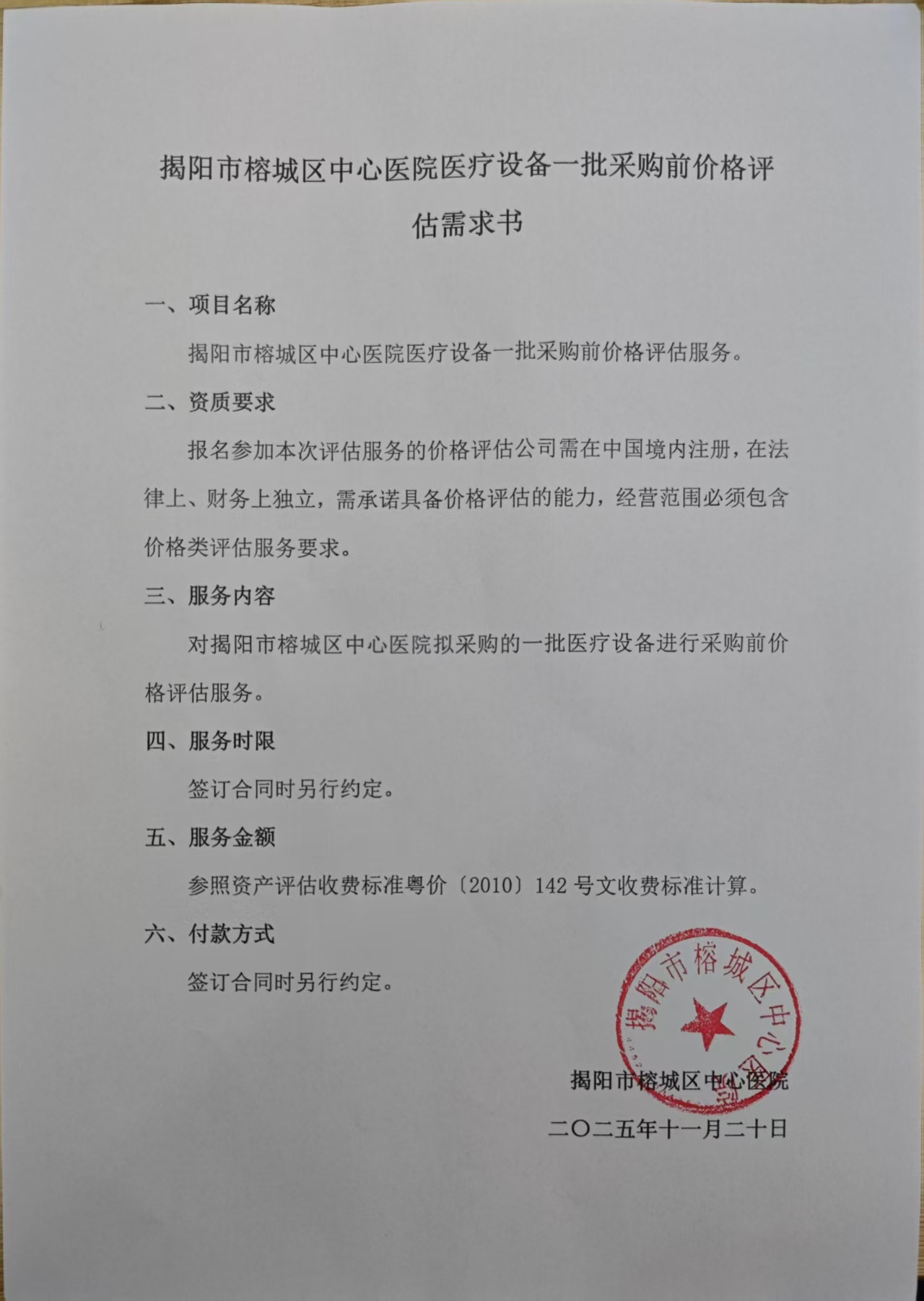 揭阳市榕城区中心医院医疗设备一批采购前价格评估服务采购公告