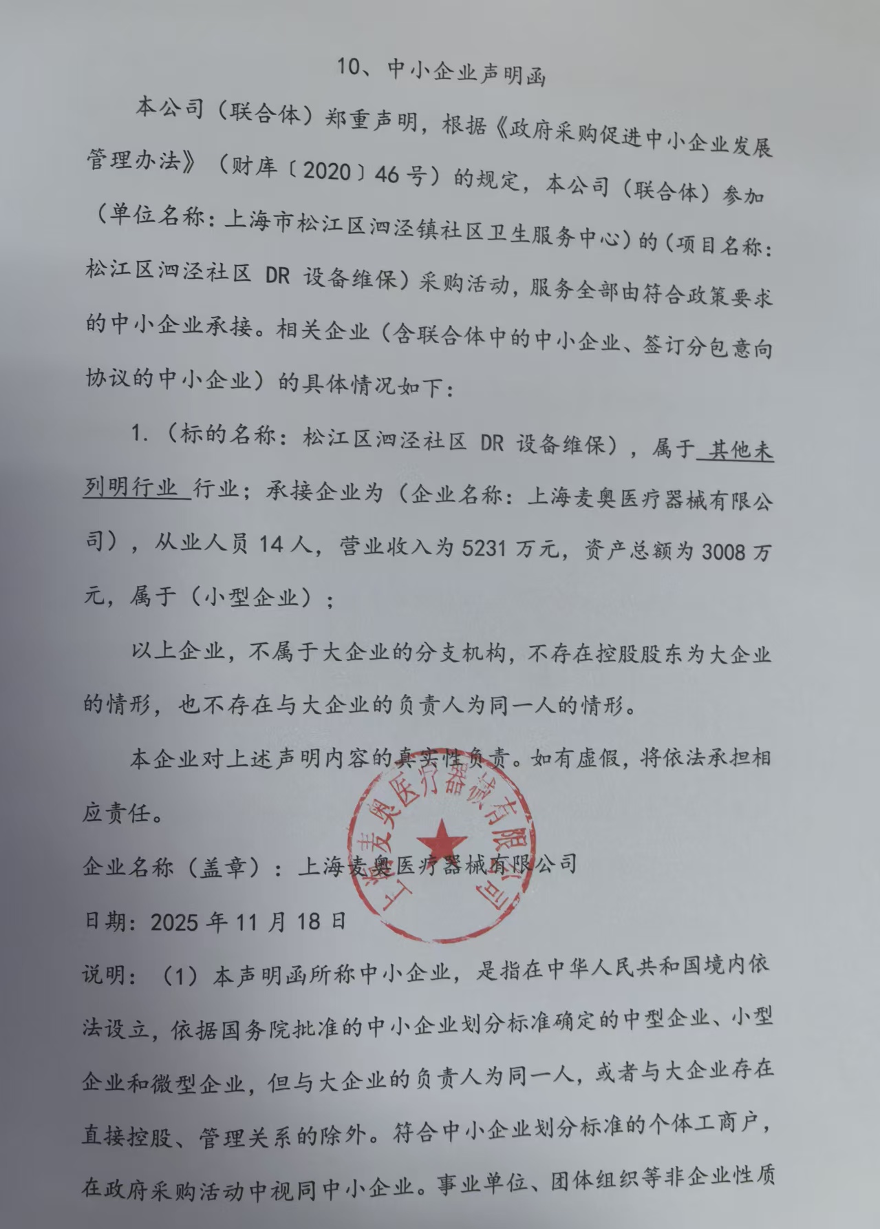松江区泗泾社区DR设备维保项目的中标(成交)结果公告