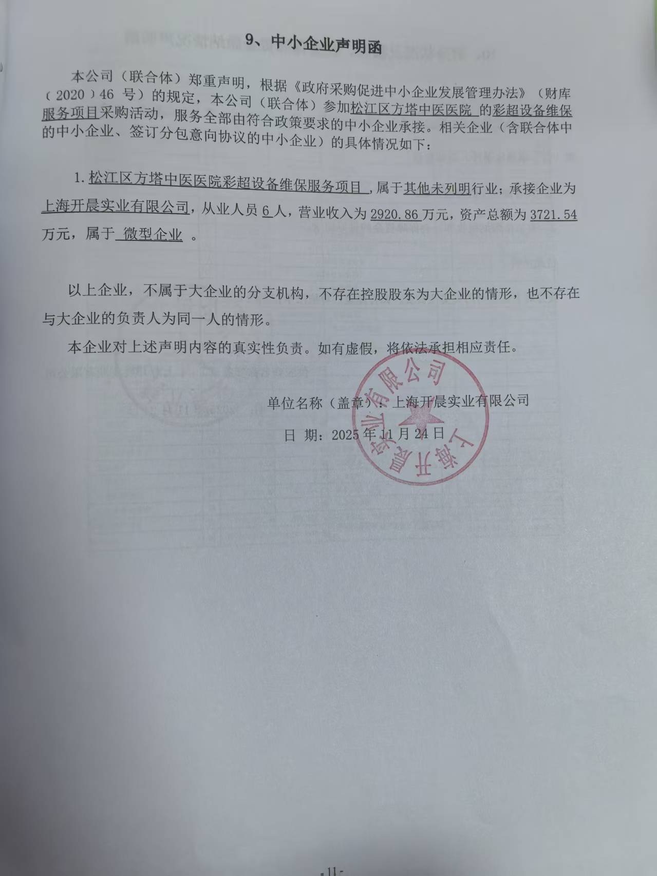附件:《中小企业声明函》