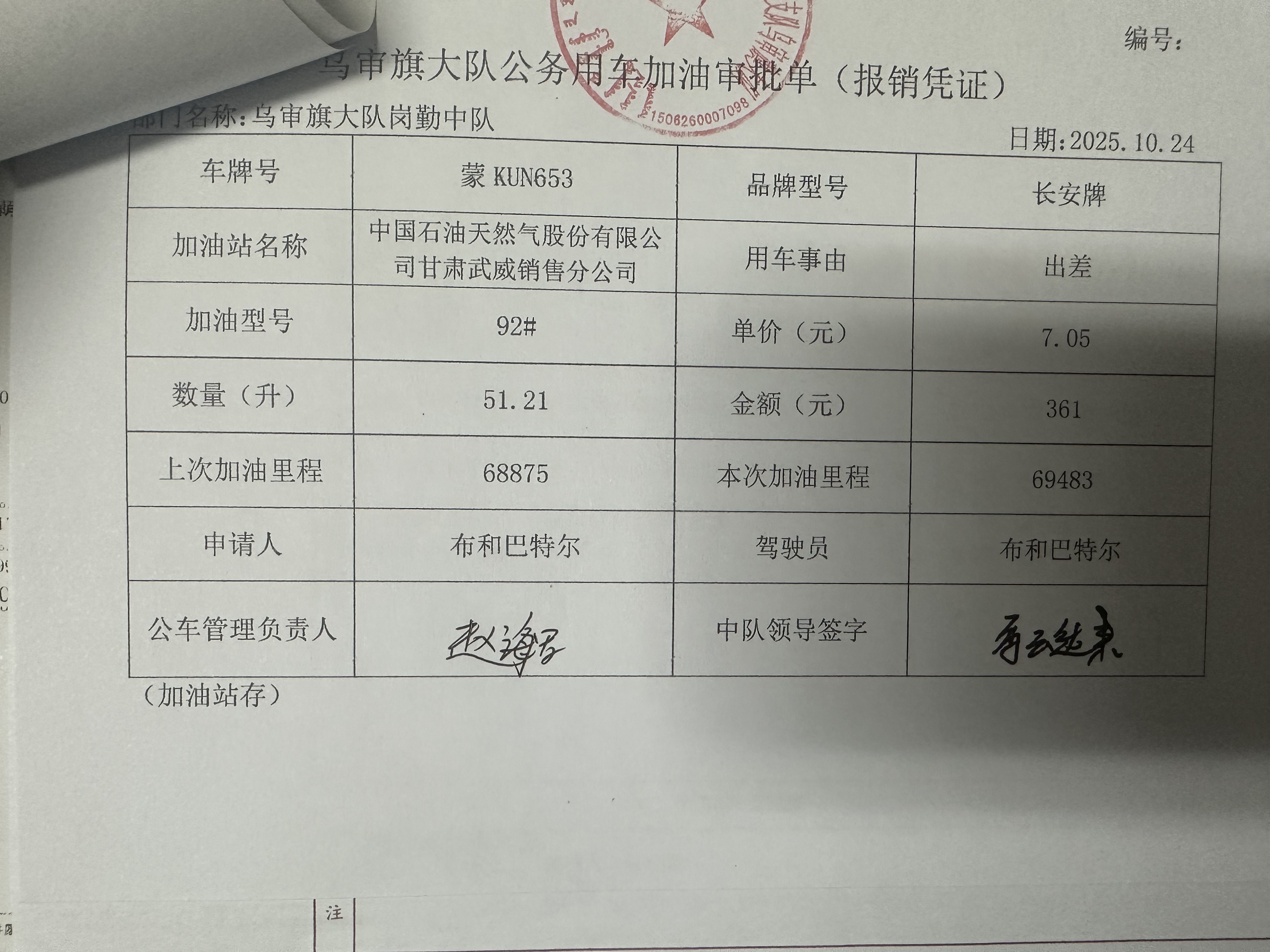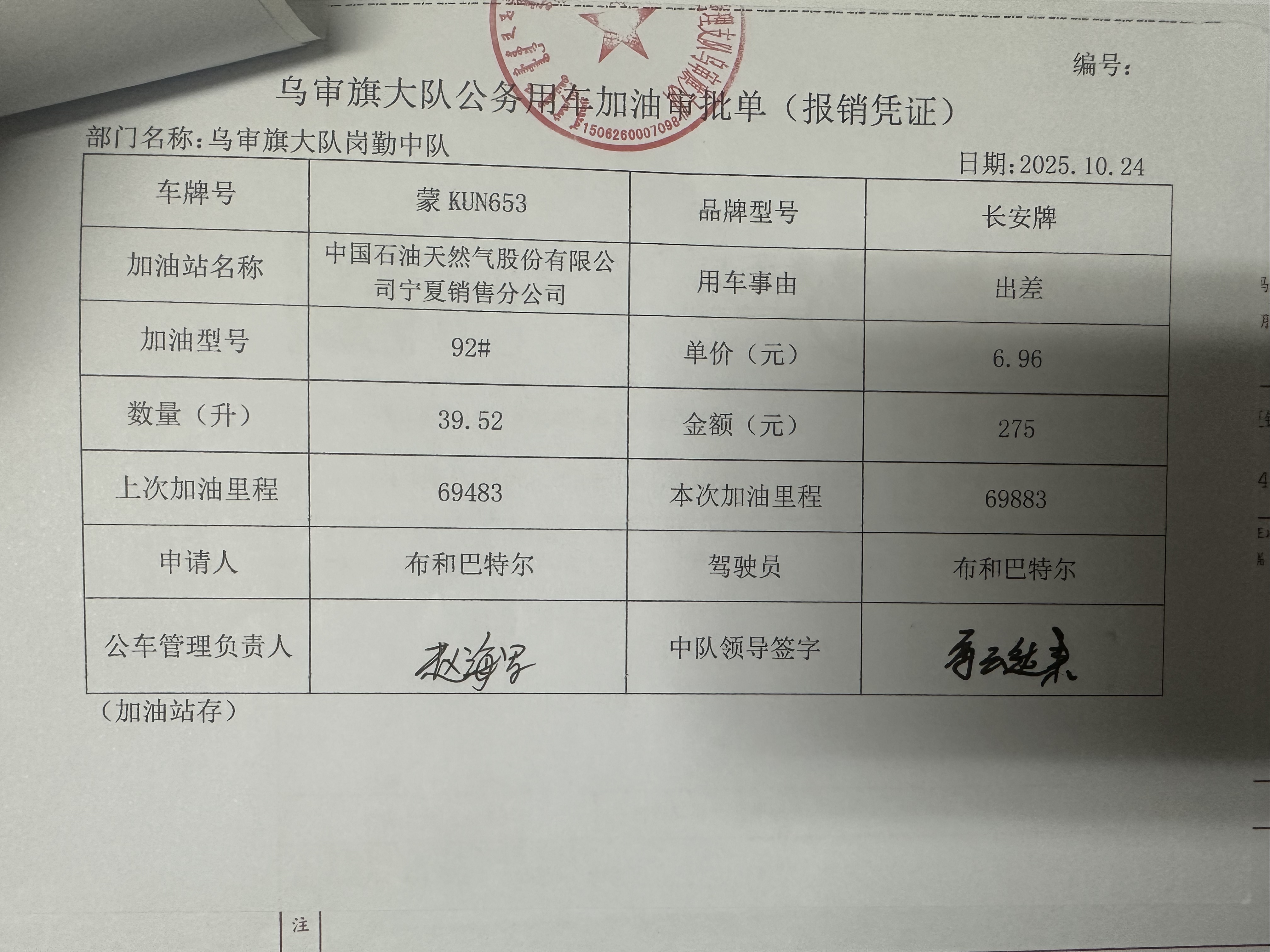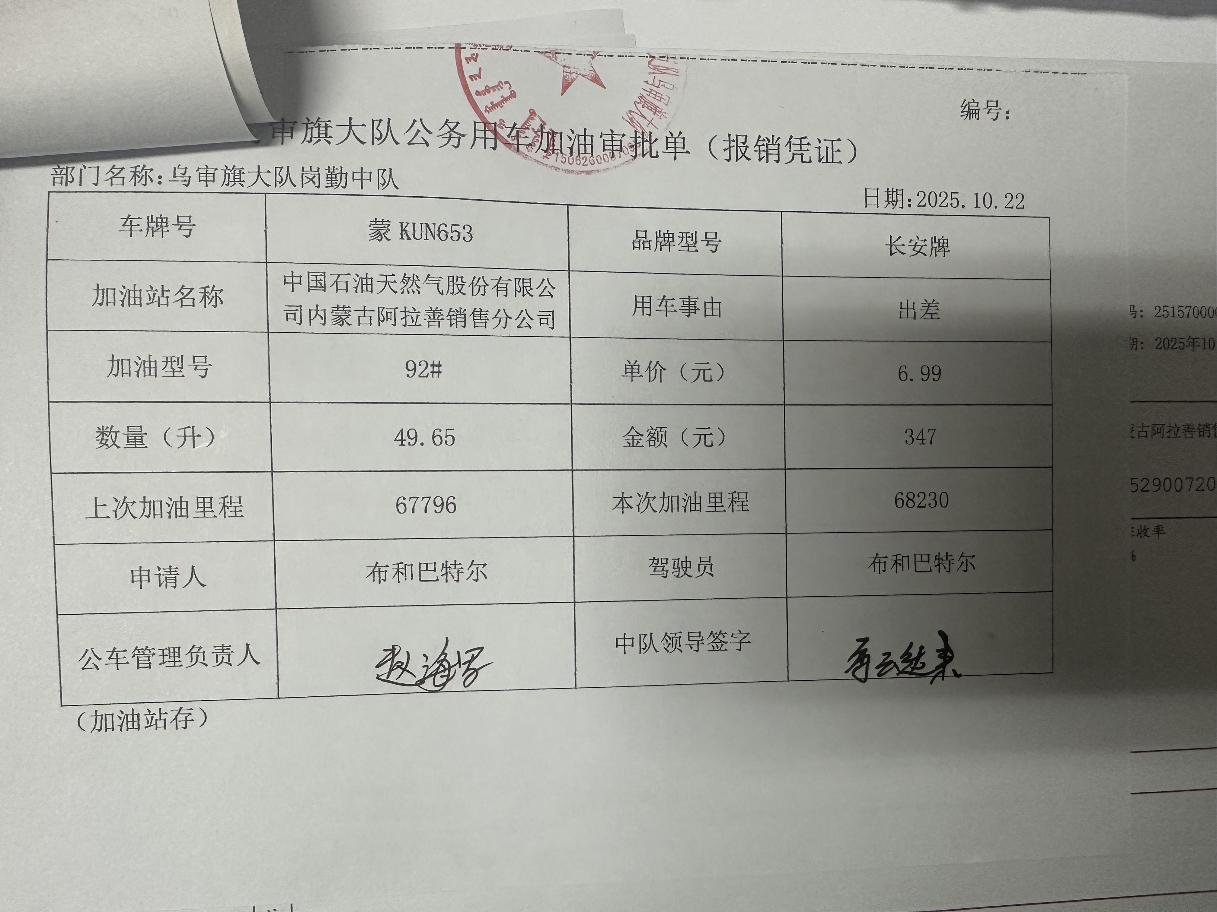 鄂尔多斯市公安局交通管理支队乌审旗大队乌审旗交管大队车辆燃料费政府采购...