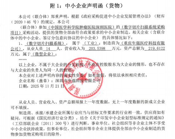 *.供应商名称:深圳市生强科技有限公司