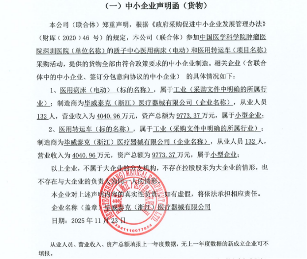 质子中心医用病床(电动)和医用转运车采购项目中标成交结果公示