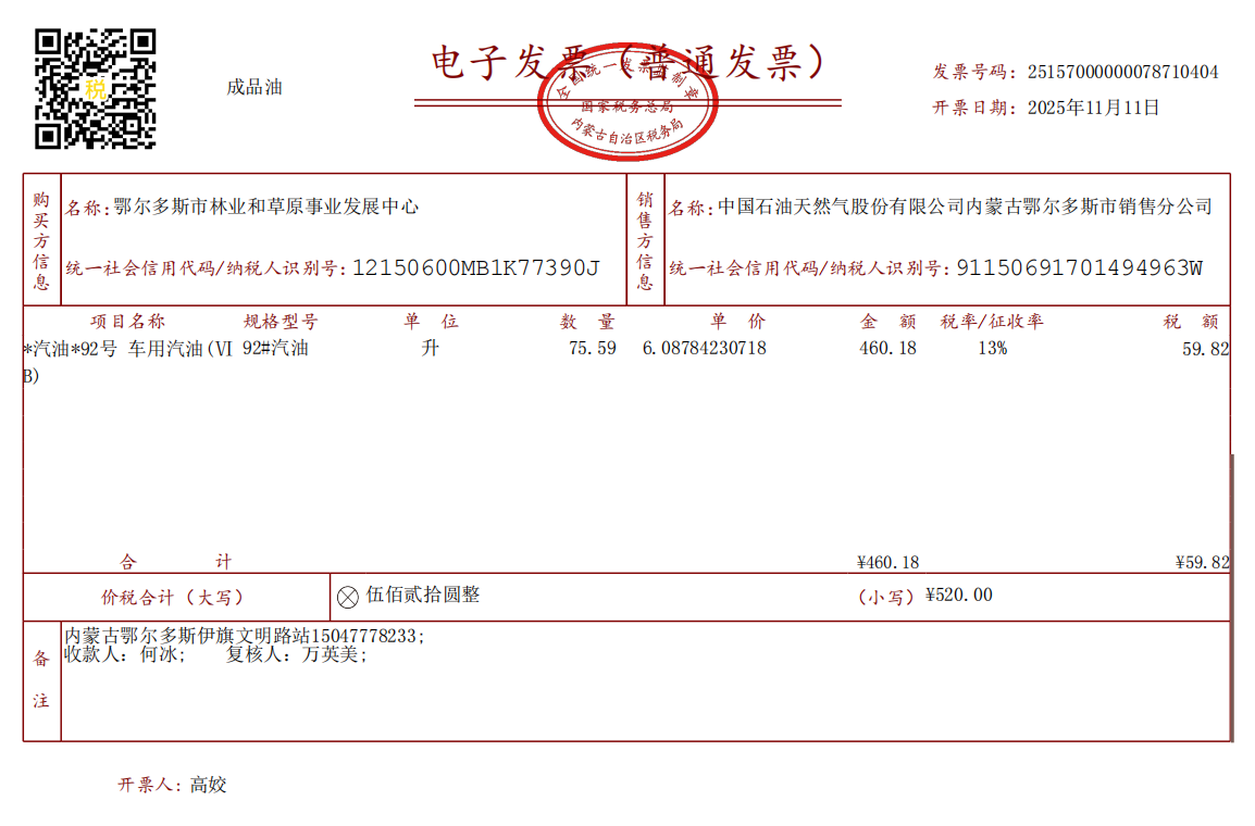 鄂尔多斯市林业和草原事业发展中心车辆加油服务政府采购合同公告