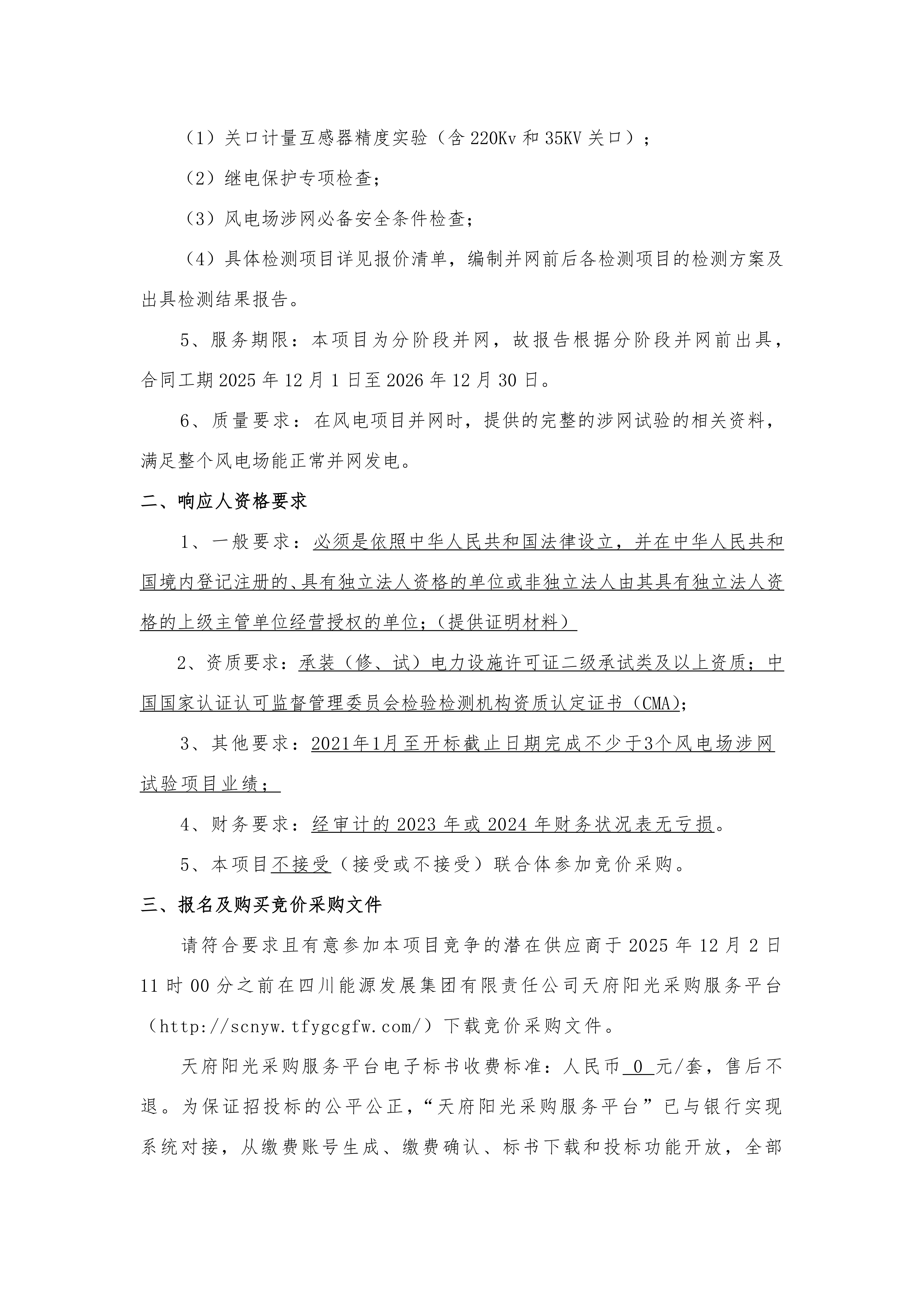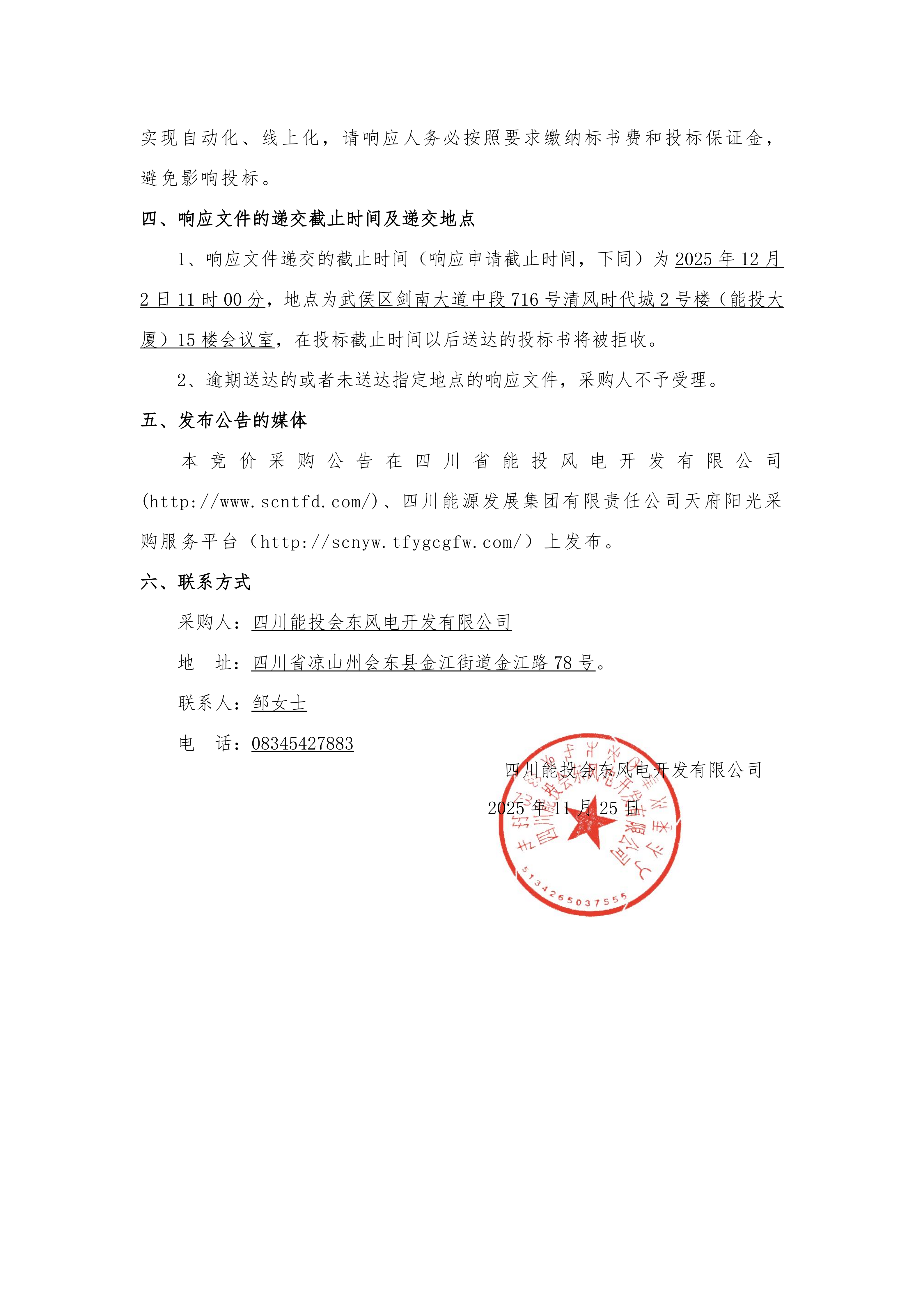 四川能投会东风电开发有限公司(采购人名称)就凉山会东堵格二期风电项目并网前涉网试验技术咨询服务项目组织竞价采购,诚邀符合资格条件的潜在响应人参与本项目的竞价采购。