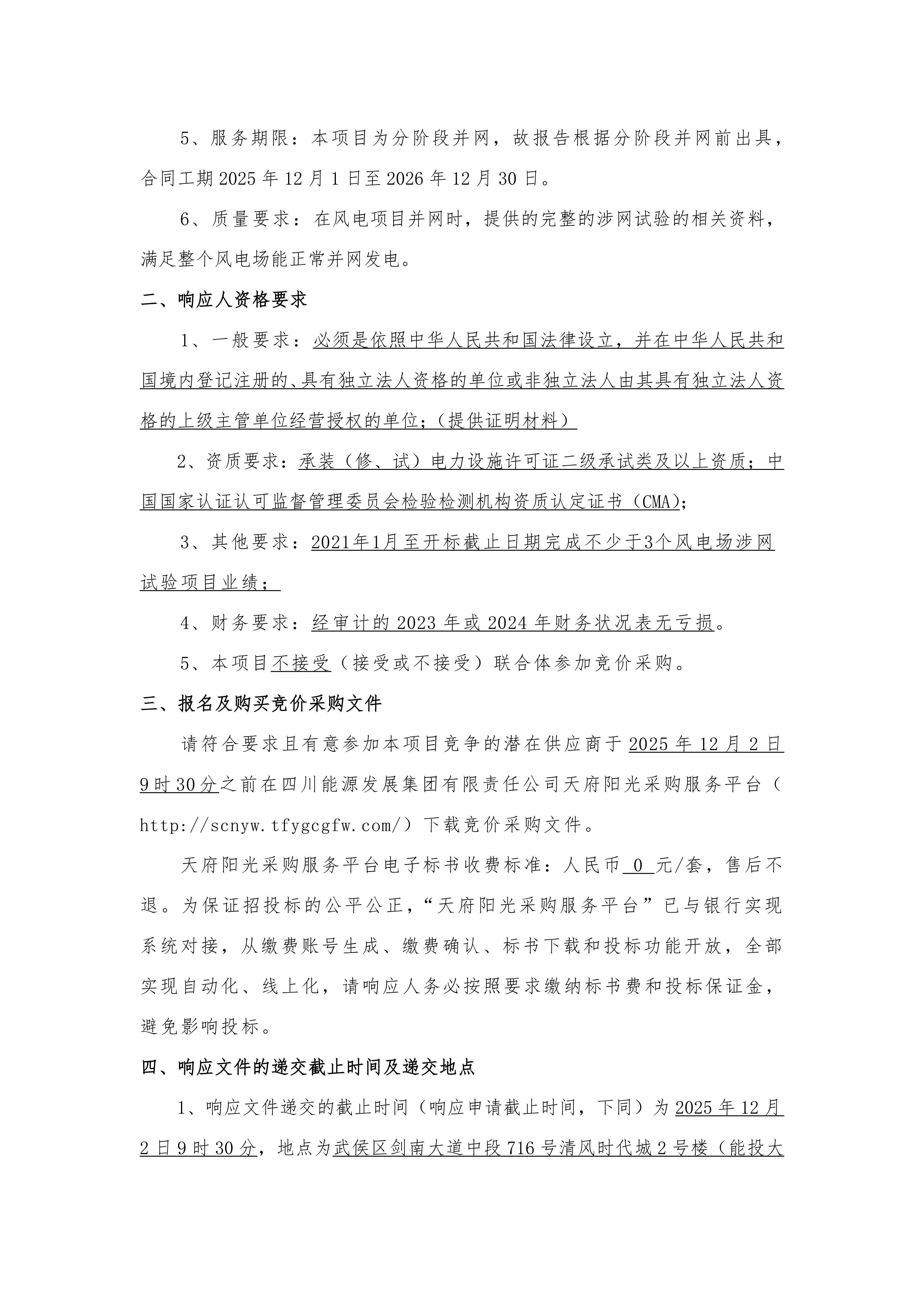 四川能投会东风电开发有限公司(采购人名称)就凉山会东小街二期风电项目并网前涉网试验技术咨询服务项目组织竞价采购,诚邀符合资格条件的潜在响应人参与本项目的竞价采购。