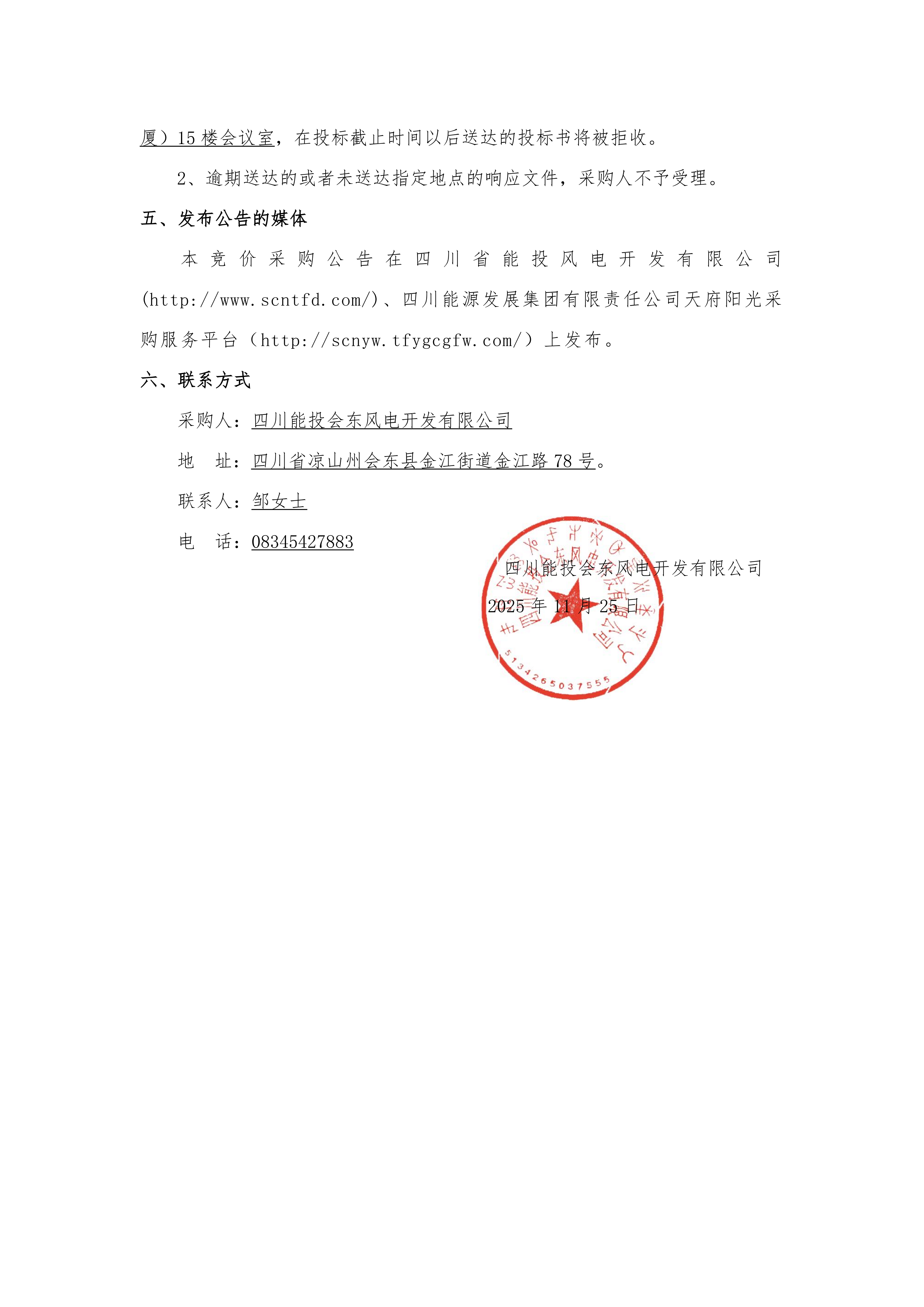 本竞价采购公告在四川省能投风电开发有限公司(****://***.******.***/)、四川能源发展集团有限责任公司天府阳光采购服务平台(****://*****.********.***/)上发布。