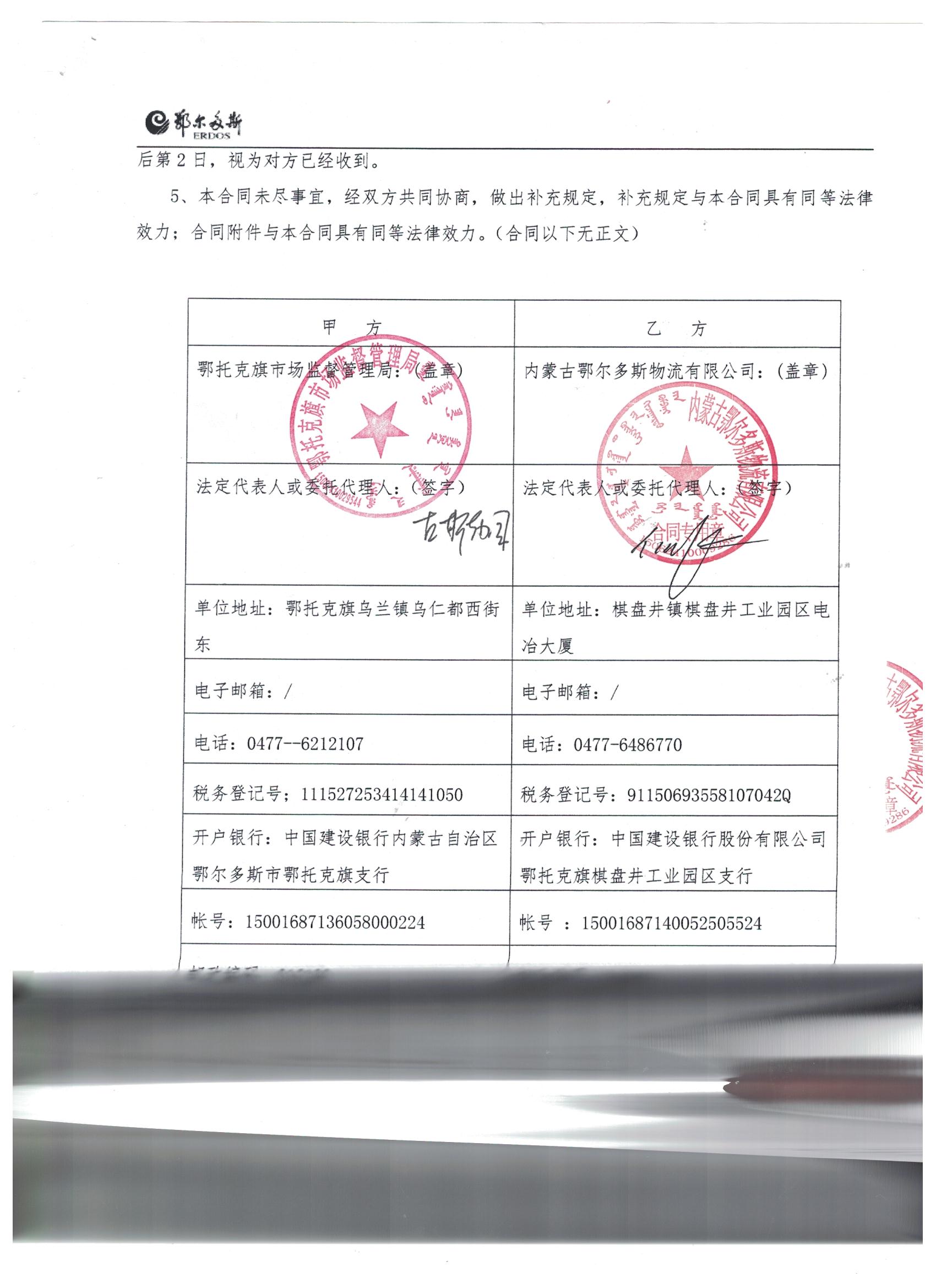 合同附件: 鄂托克旗市场监督管理局 ****年**月**日 |