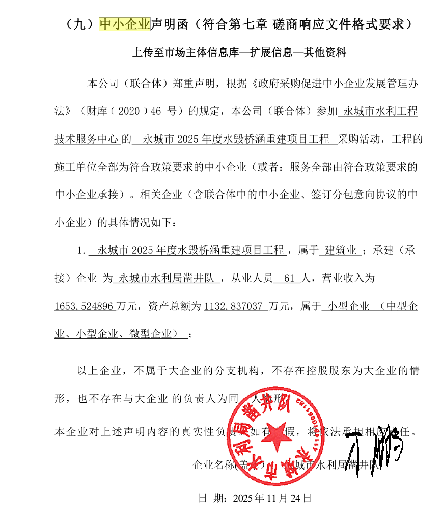 永城市水利工程技术服务中心永城市2025年度水毁桥涵重建项目工程项目-成交公告