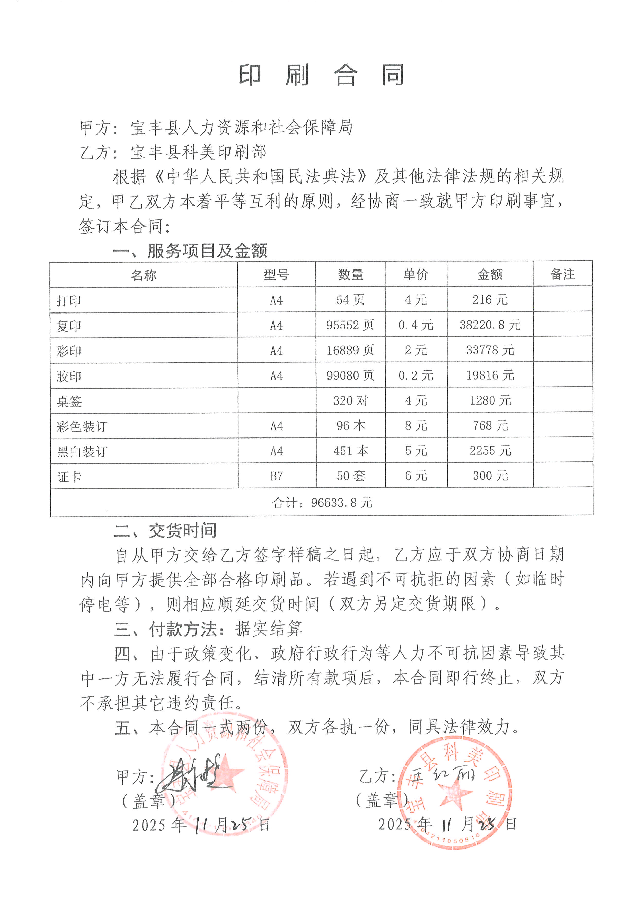 | *.供应商(乙方):宝丰县科美印刷部 | ||||||||||||
