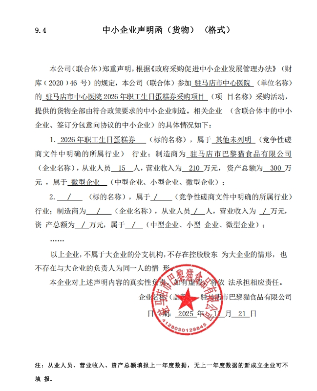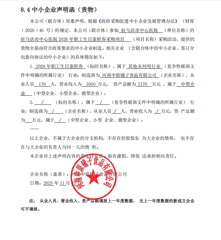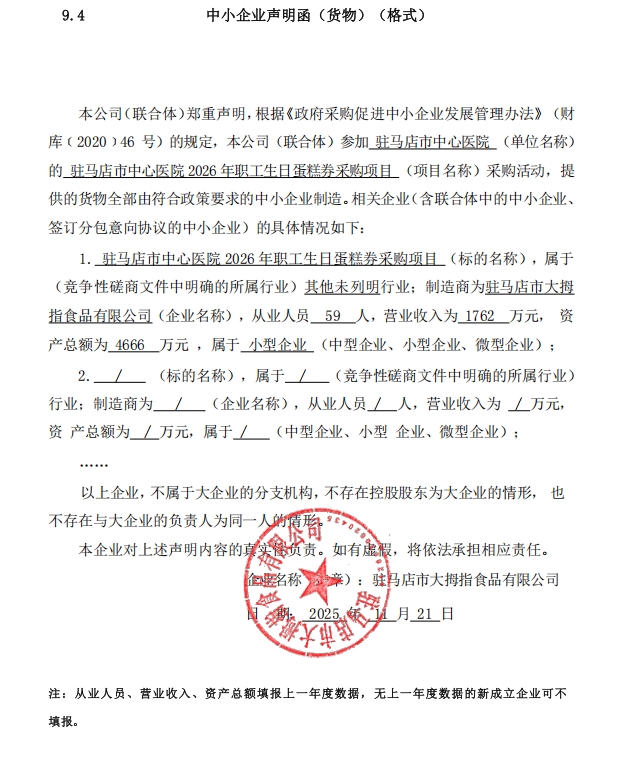 驻马店市中心医院2026年职工生日蛋糕券采购项目-成交公告