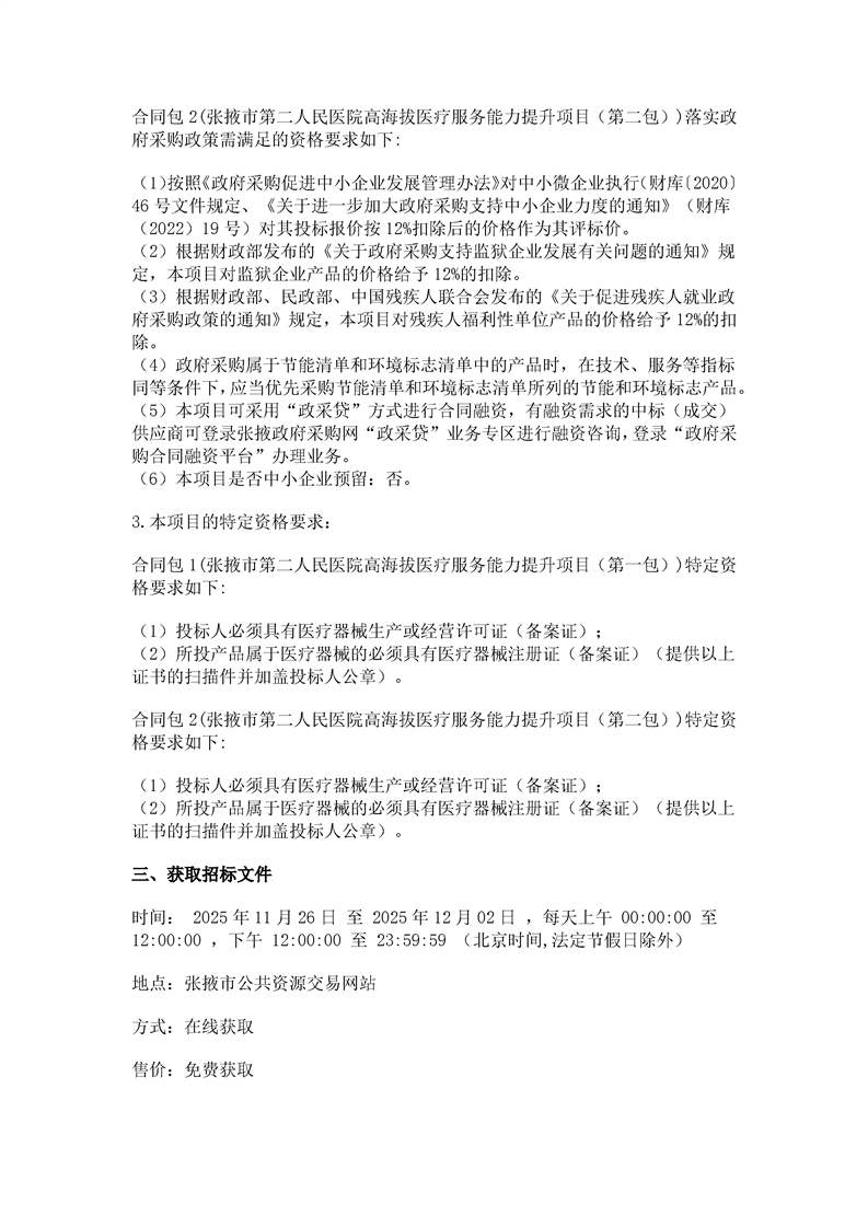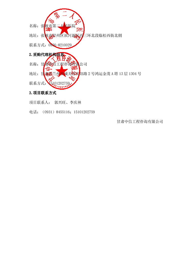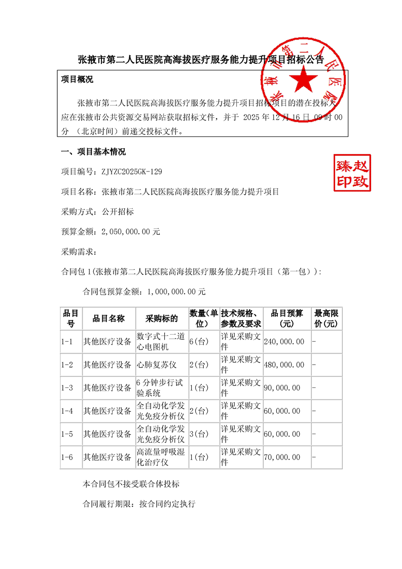 张掖市第二人民医院高海拔医疗服务能力提升项目招标公告
