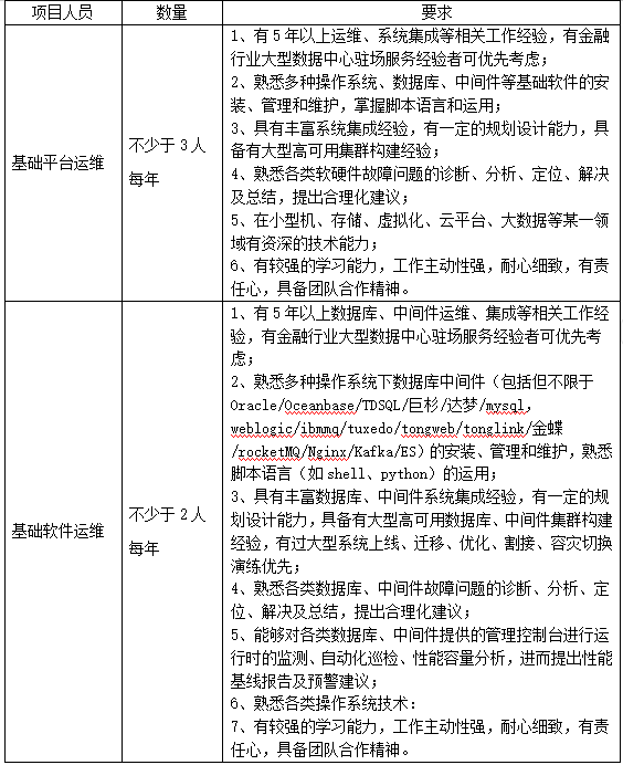 本项目要求投标人提供不少于*人每年的现场服务团队,人员需具备本科及以上学历、*年及以上工作经验。人员要求具体如下: