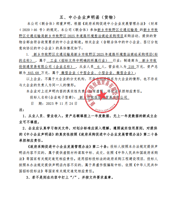 新乡市牧野区交通运输局新乡市牧野区2025年道路环境整治商砼采购项目中标公告
