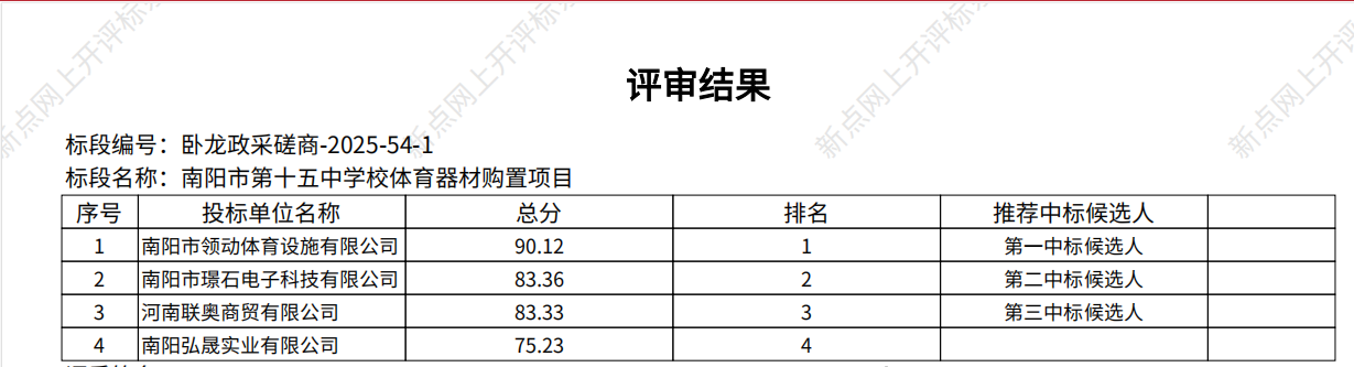 南阳市第十五中学校体育器材购置项目-成交公告