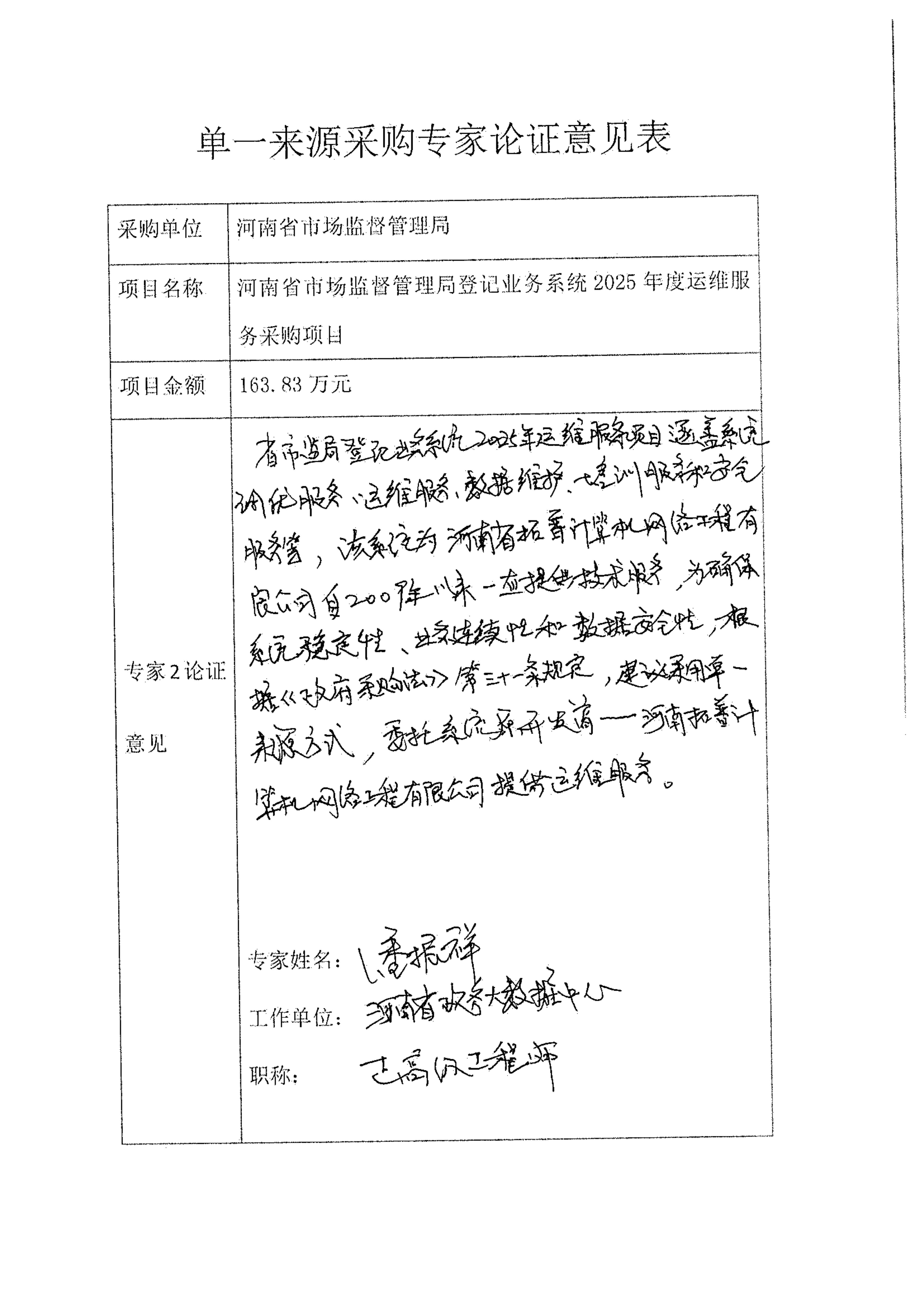 河南省市场监督管理局登记业务系统2025年度运维服务采购项目单一来源采购公示
