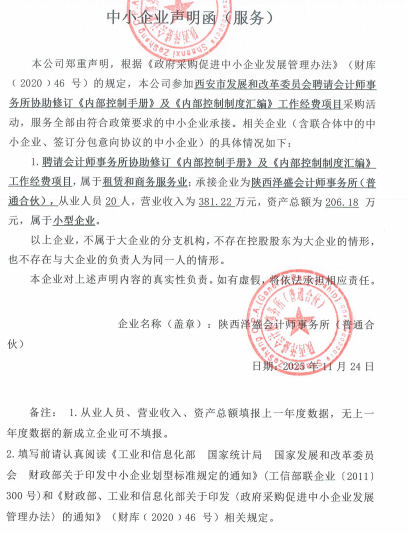 西安市发展和改革委员会聘请会计师事务所协助修订《内部控制手册》及《内部控制制度汇编》工作经费项目成交结果公告