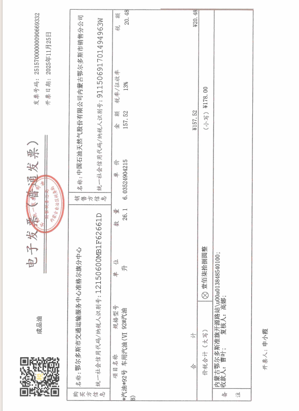 一、合同编号:*****二、合同名称:公务车加油三、项目编号:鄂财购备字(电子)[****]*****号四、项目名称:车辆加油、添加燃料服务五、合同主体采购人(甲方):鄂尔多斯市交通运输服务中心 地址:国泰广场*********楼 联系方式:*********** 供应商(乙方):中国石油天然气股份有限公司内蒙古鄂尔多斯市销售分公司 地址:内蒙古自治区鄂尔多斯市康巴什区正阳街与康盛路交汇处 联系方式:*********** 六、合同主要信息主要标的: