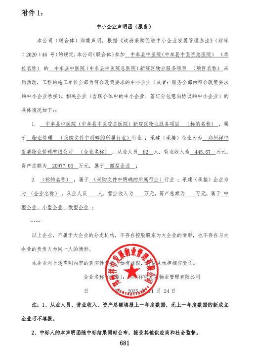 中牟县中医院(中牟县中医院总医院)新院区物业服务项目*中标公告