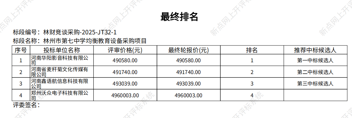 林州市第七中学均衡教育设备采购项目-成交结果公告