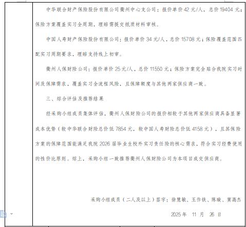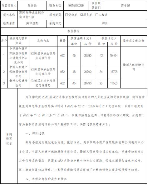 [分散采购]2026届毕业生校外实习责任险采购项目公示