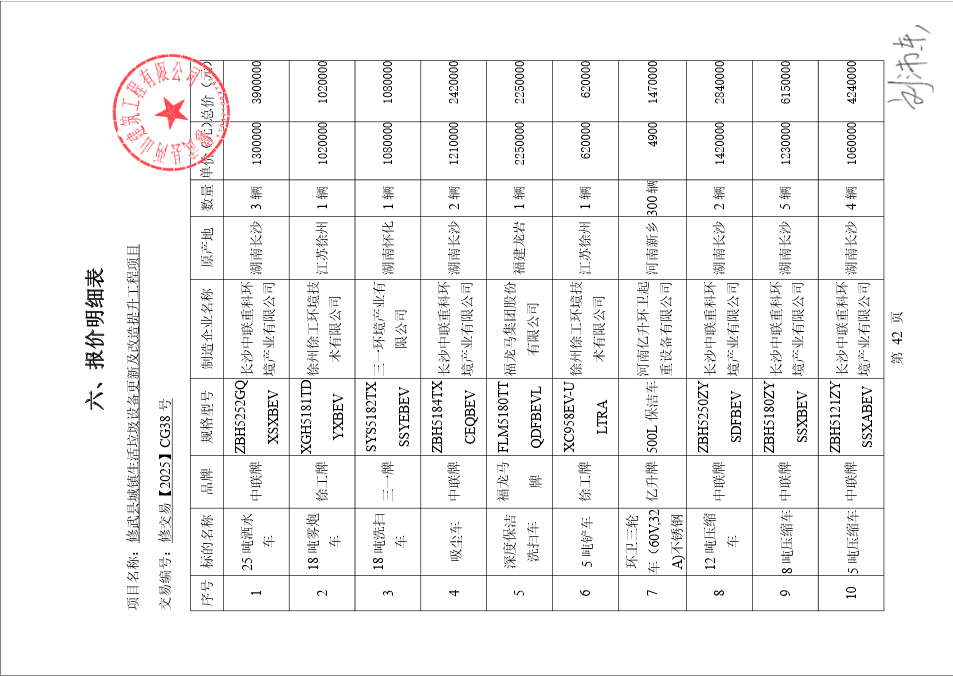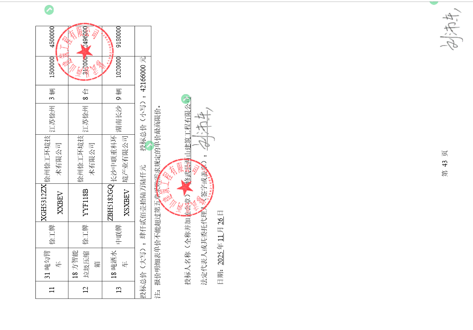 | *、供应商得分及排序:排序*.修武县两山建筑工程有限公司,得分**.**分;排序*.河南中意环卫设备有限公司,得分**.**分;排序*.河南垒土环境科技有限公司,得分**.**分;排序*.湖北运隆汽车制造有限公司,得分**.**分;排序*.河南航翔环保科技有限公司,得分**.**分。 *、废标情况:无。 *、各有关当事人对中标(成交)结果公告有异议的,可以在公告期限届满之日起七个工作日内,以书面形式向采购人或采购代理机构提出质疑,并以供应商提交的质疑函接受确认日期作为受理时间,逾期未提交的不再受理。 | |||||||||||||||||||||||||||||||