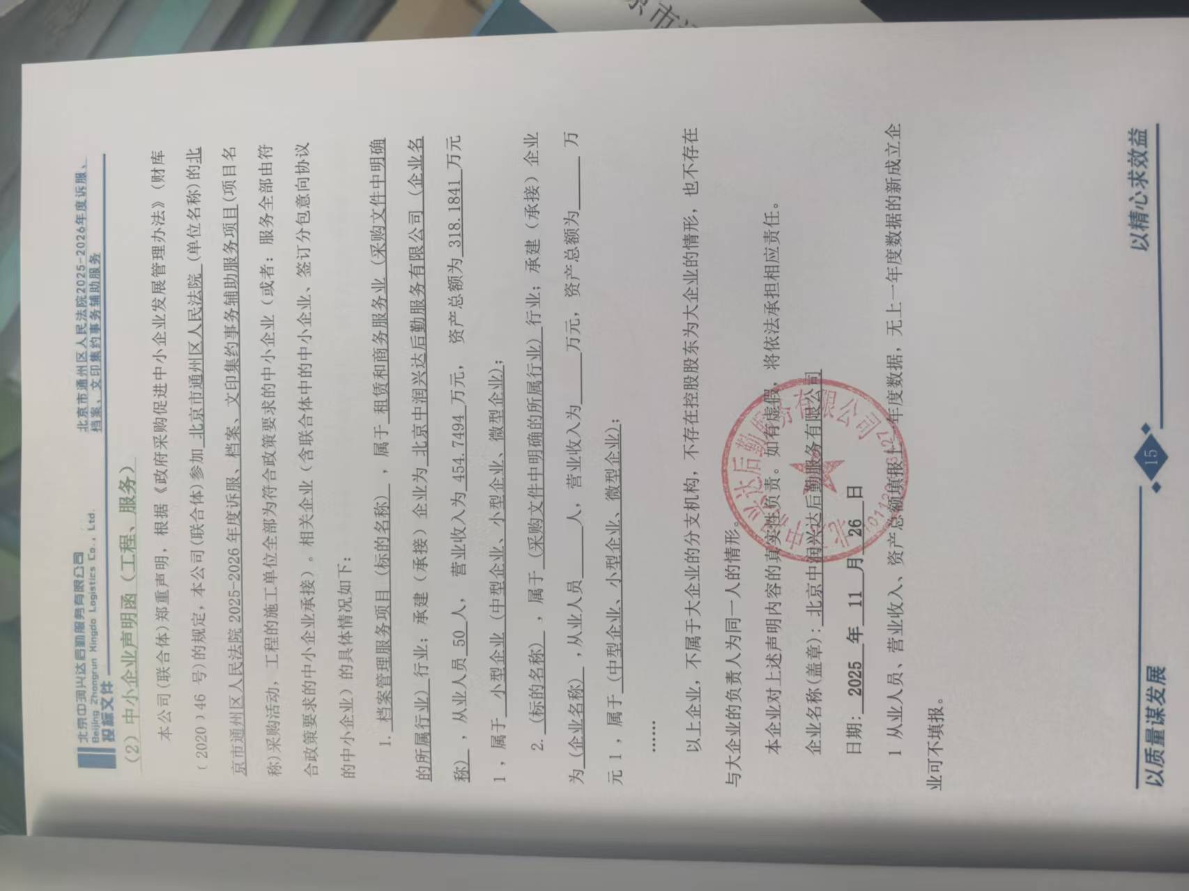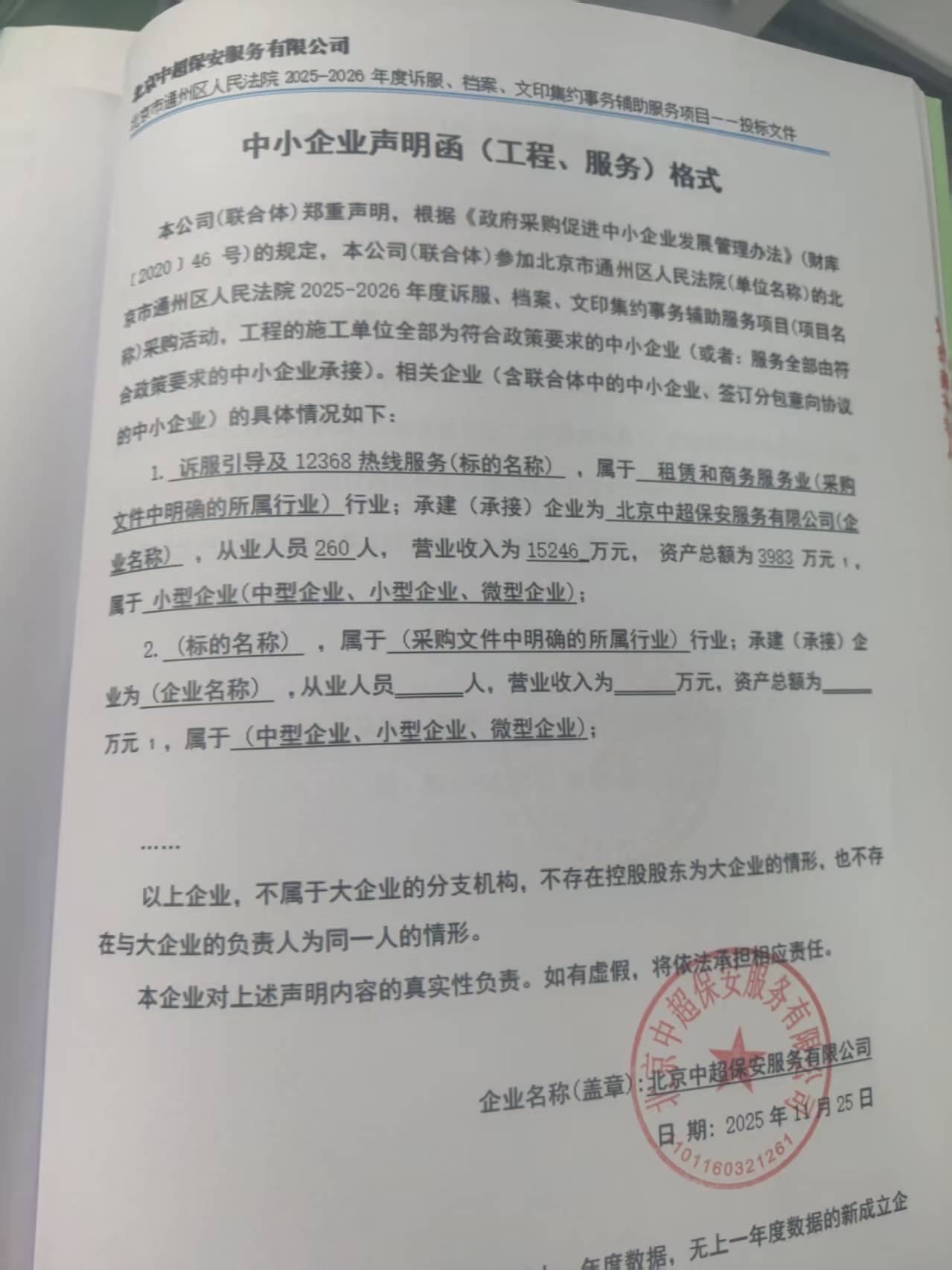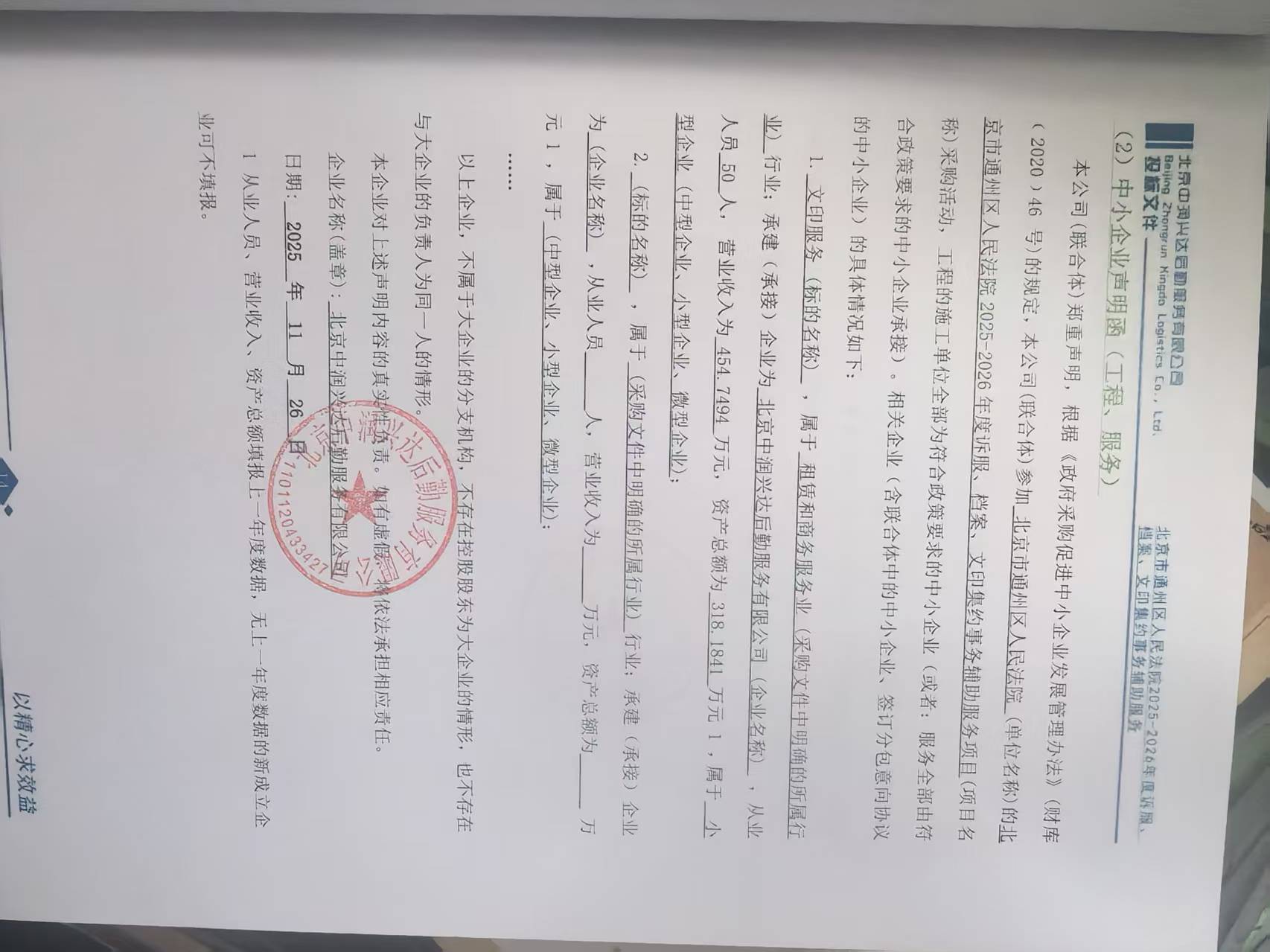 二、项目名称:北京市通州区人民法院*********年度诉服、档案、文印集约事务辅助服务项目
