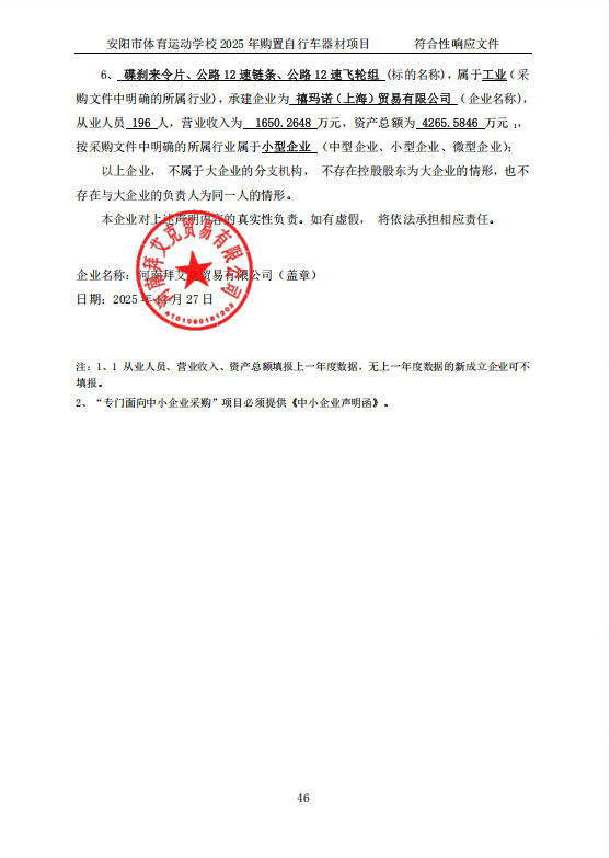 | *、采购项目名称:安阳市体育运动学校****年购置自行车器材项目 | |||||||||||||||||||||||||||||||