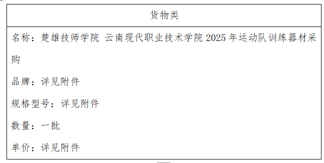 楚雄技师学院云南现代职业技术学院2025年运动队训练器材采购成交结果公告