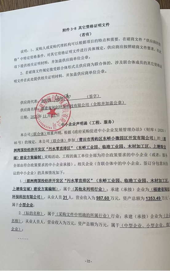 湄洲湾国投经济开发区“污水零直排区”(东峤工业园、临港工业园、木材加工区、上塘珠宝城)建设方案编制成交公告