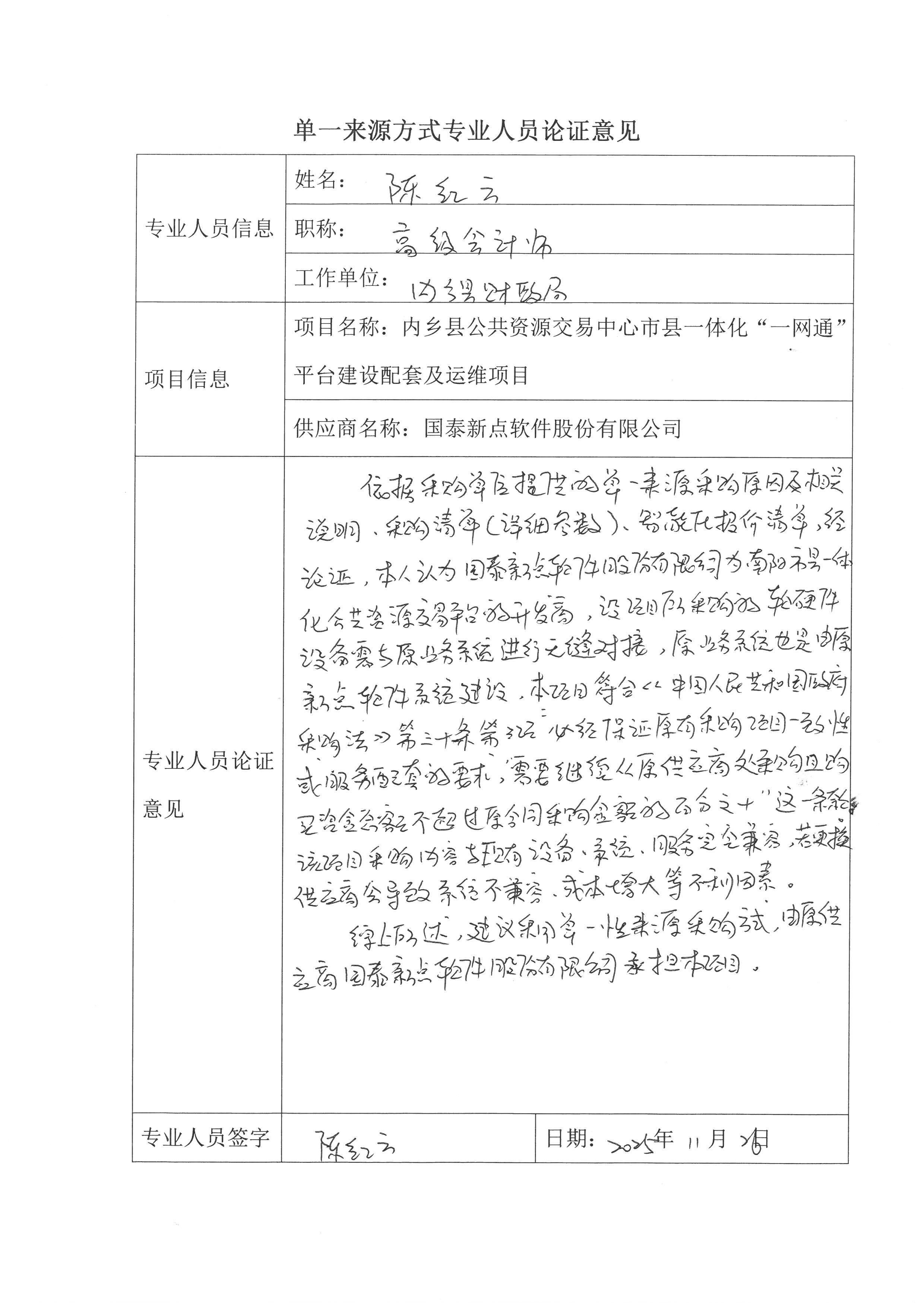 内乡县公共资源交易中心市县一体化“一网通”平台建设配套及运维项目单一来源采购公示