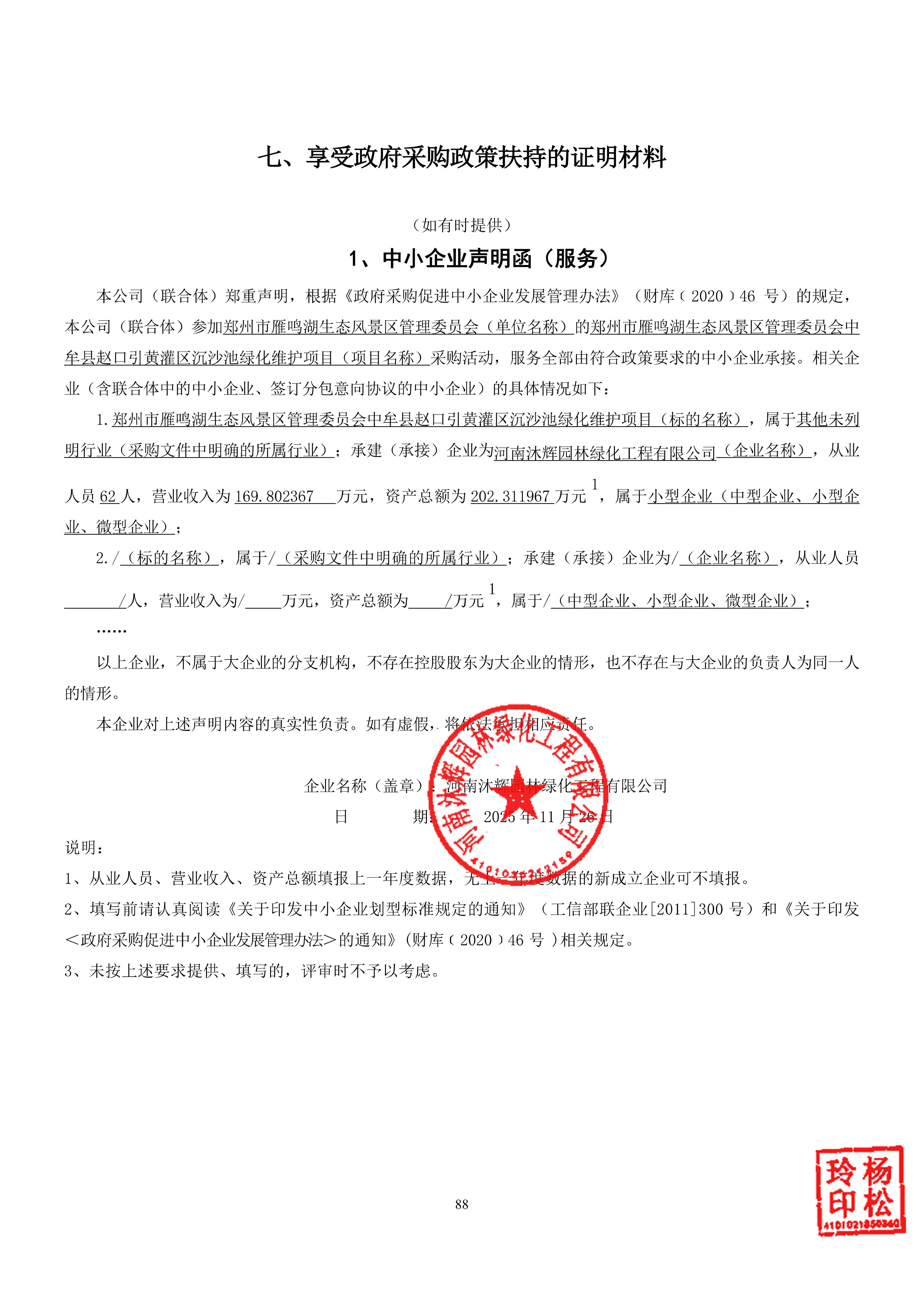 | *、采购项目名称:郑州市雁鸣湖生态风景区管理委员会中牟县赵口引黄灌区沉沙池绿化维护项目 | |||||||||||||||||||||||||||||||
