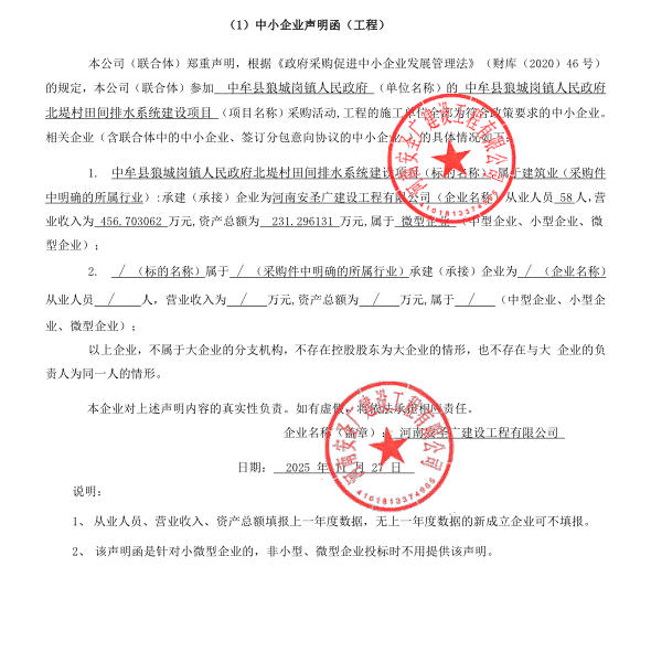 | *、采购项目名称:中牟县狼城岗镇人民政府北堤村田间排水系统建设项目 | |||||||||||||||||||||||||||||||