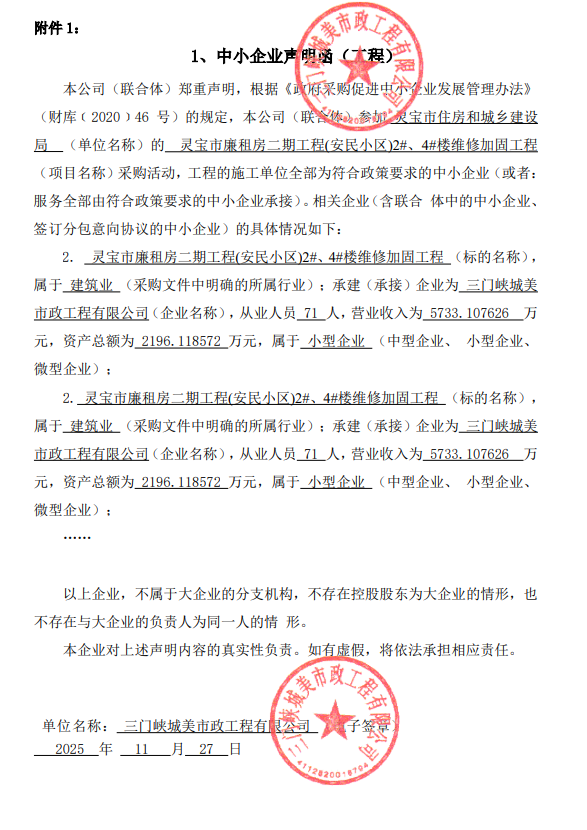 灵宝市住房和城乡建设局灵宝市廉租房二期工程(安民小区)2#、4#楼维修加固工程-成交公告