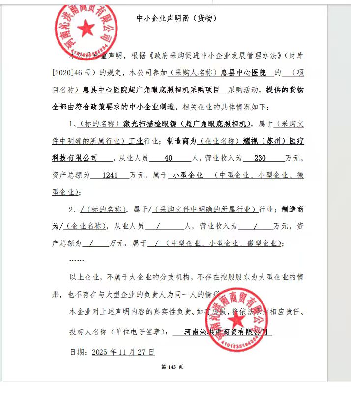 息县中心医院超广角眼底照相机采购项目中标公告