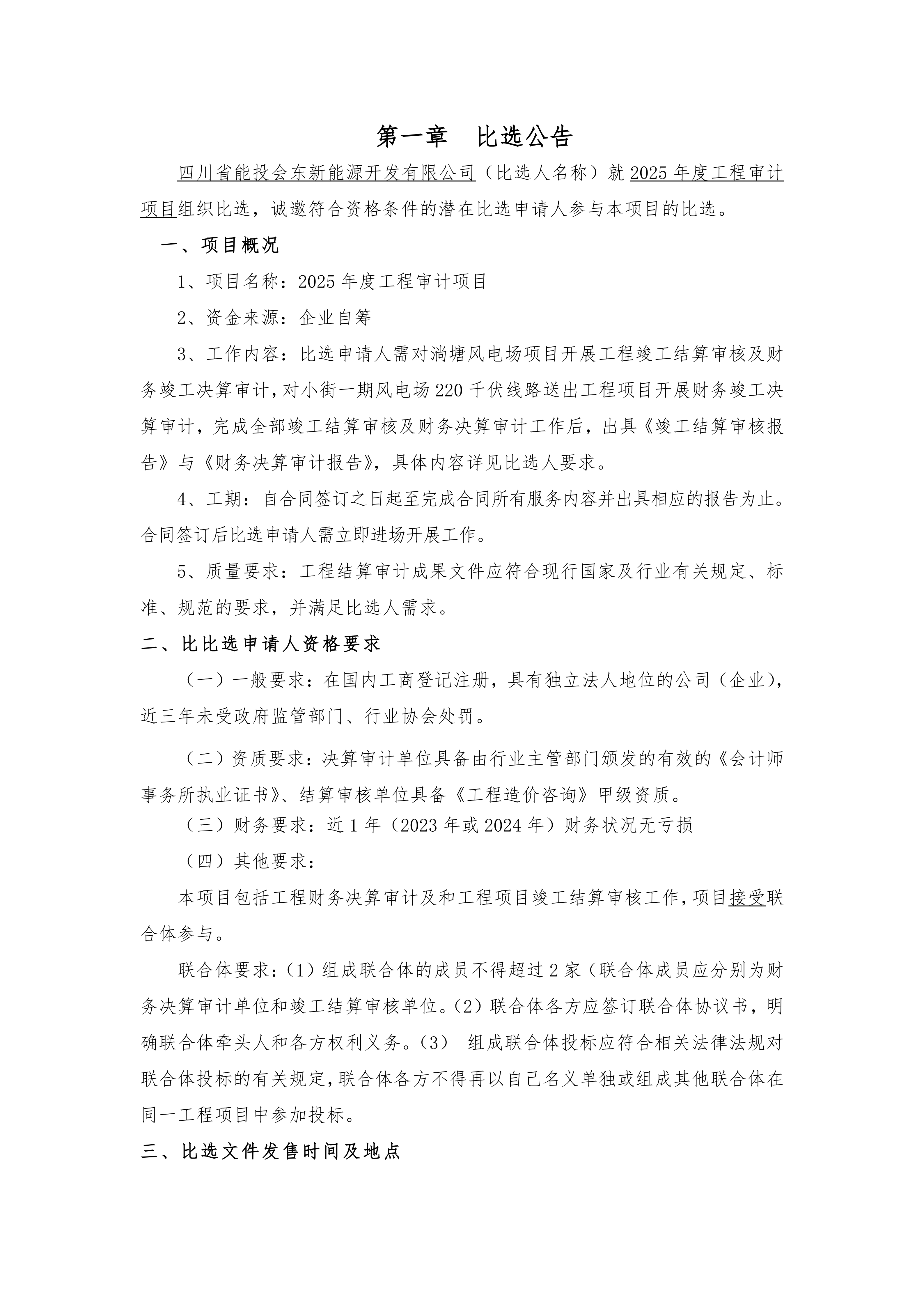 四川省能投会东新能源开发有限公司(比选人名称)就****年度工程审计项目组织比选,诚邀符合资格条件的潜在比选申请人参与本项目的比选。