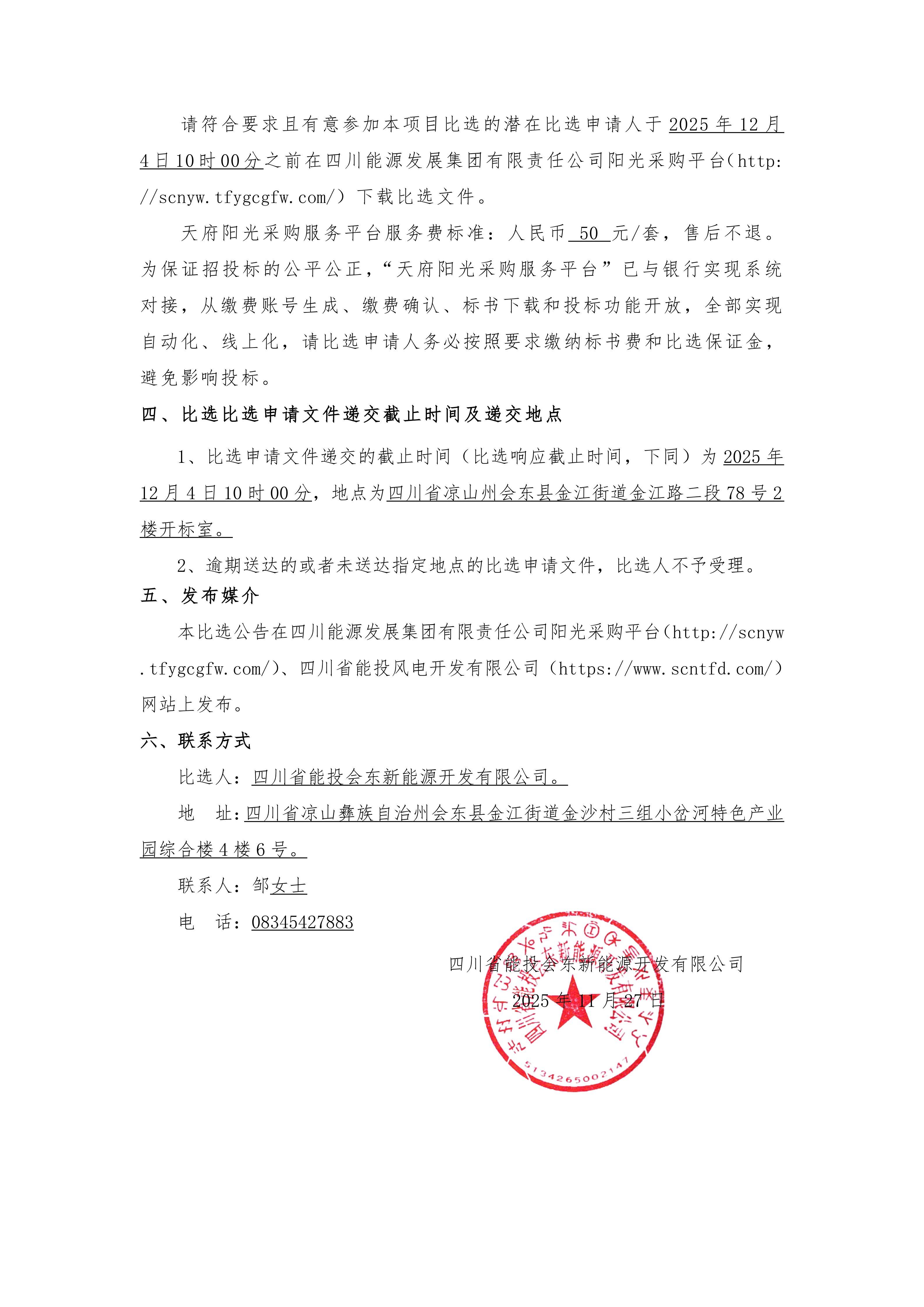 本比选公告在四川能源发展集团有限责任公司阳光采购平台(****://*****.********.***/)、四川省能投风电开发有限公司(*****://***.******.***/)网站上发布。