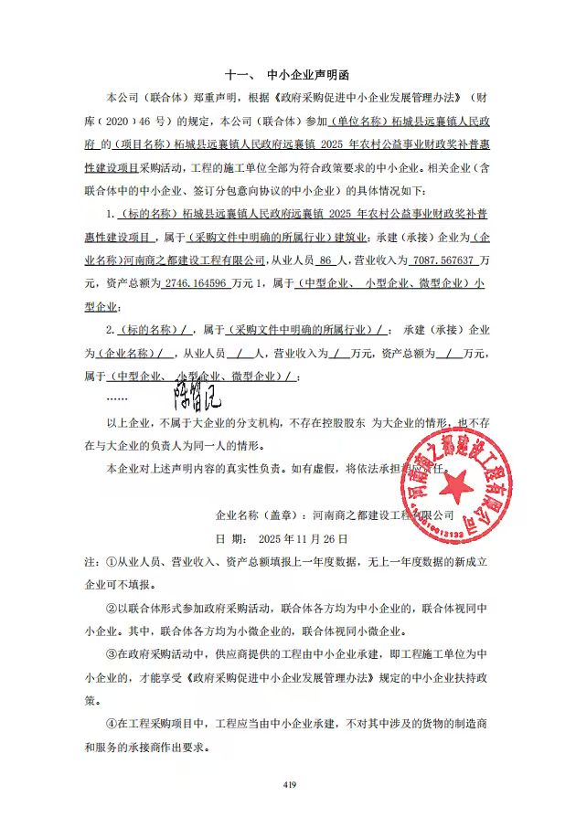 柘城县远襄镇人民政府远襄镇2025年农村公益事业财政奖补普惠性建设项目-成交公告