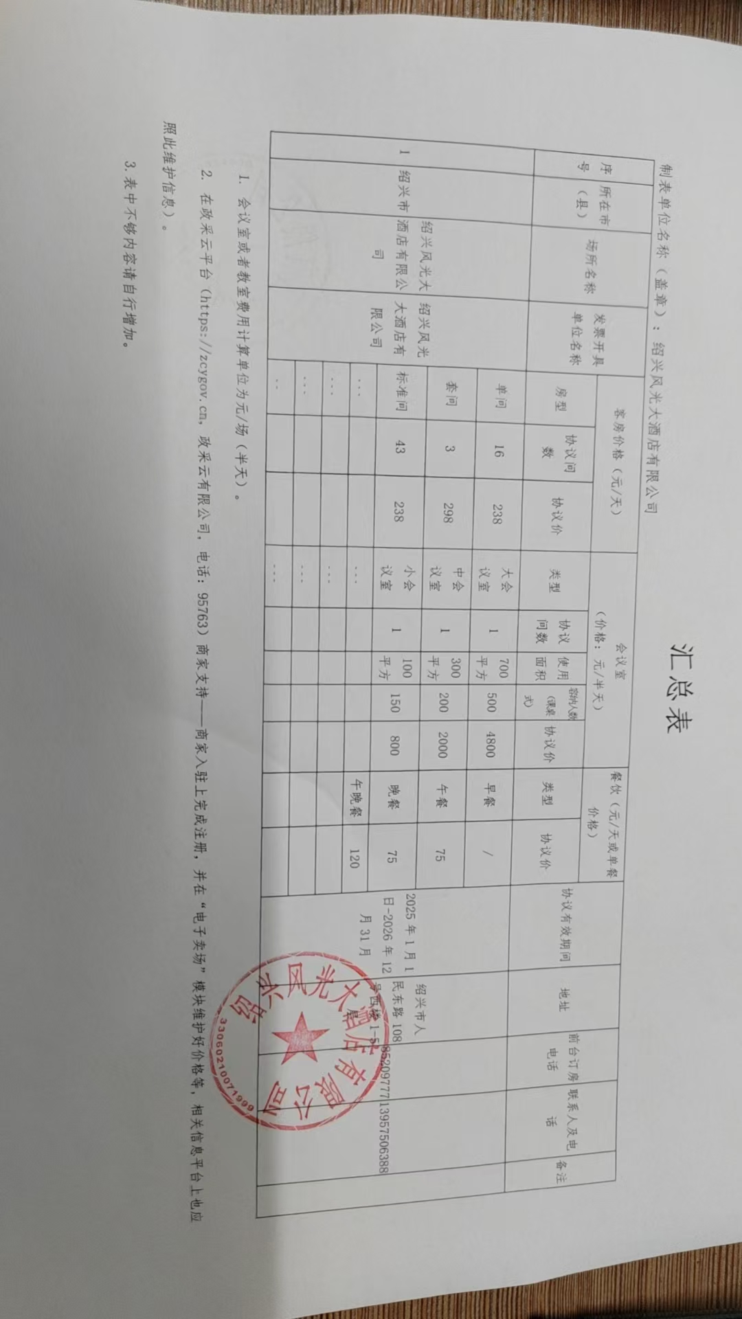 绍兴风光大酒店有限公司入围2025-2026年度绍兴市会议服务开放式框架协议采购项目的结果公告