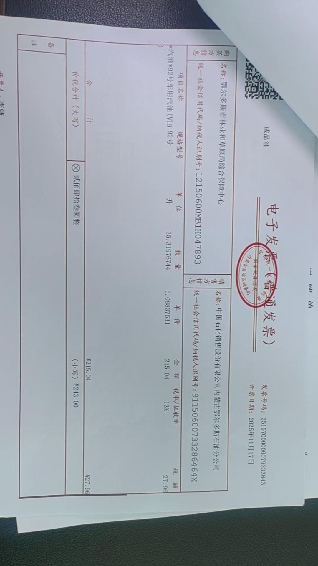 鄂尔多斯市林业和草原局综合保障中心车辆加油服务政府采购合同公告