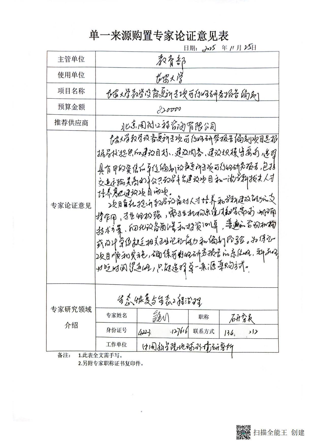 长安大学教学设备更新专项可行性研究报告编制采购项目,拟采取单一来源方式采购。