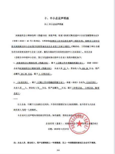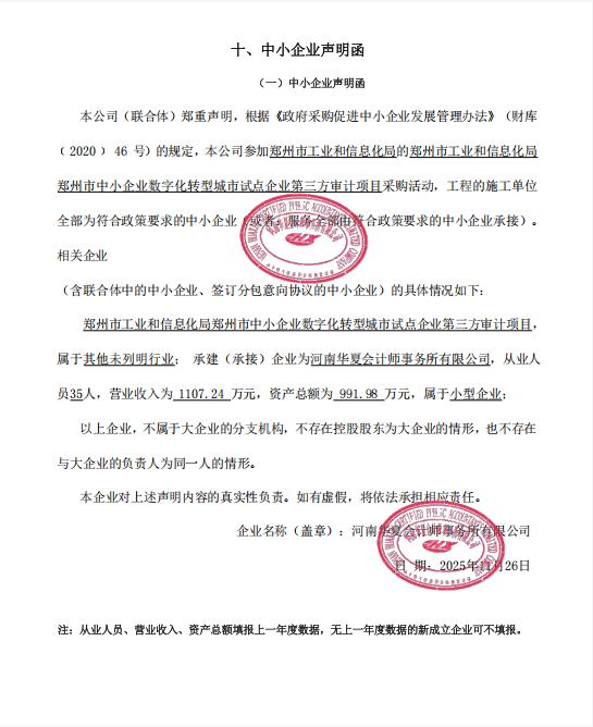 郑州市工业和信息化局郑州市中小企业数字化转型城市试点企业第三方审计项目*成交公告