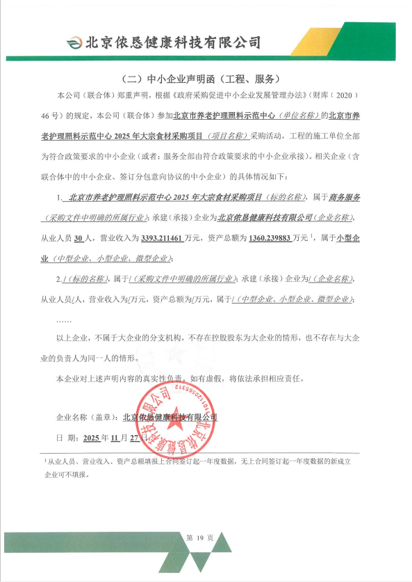 [公开]北京市养老护理照料示范中心2025年大宗食材采购项目中标公告