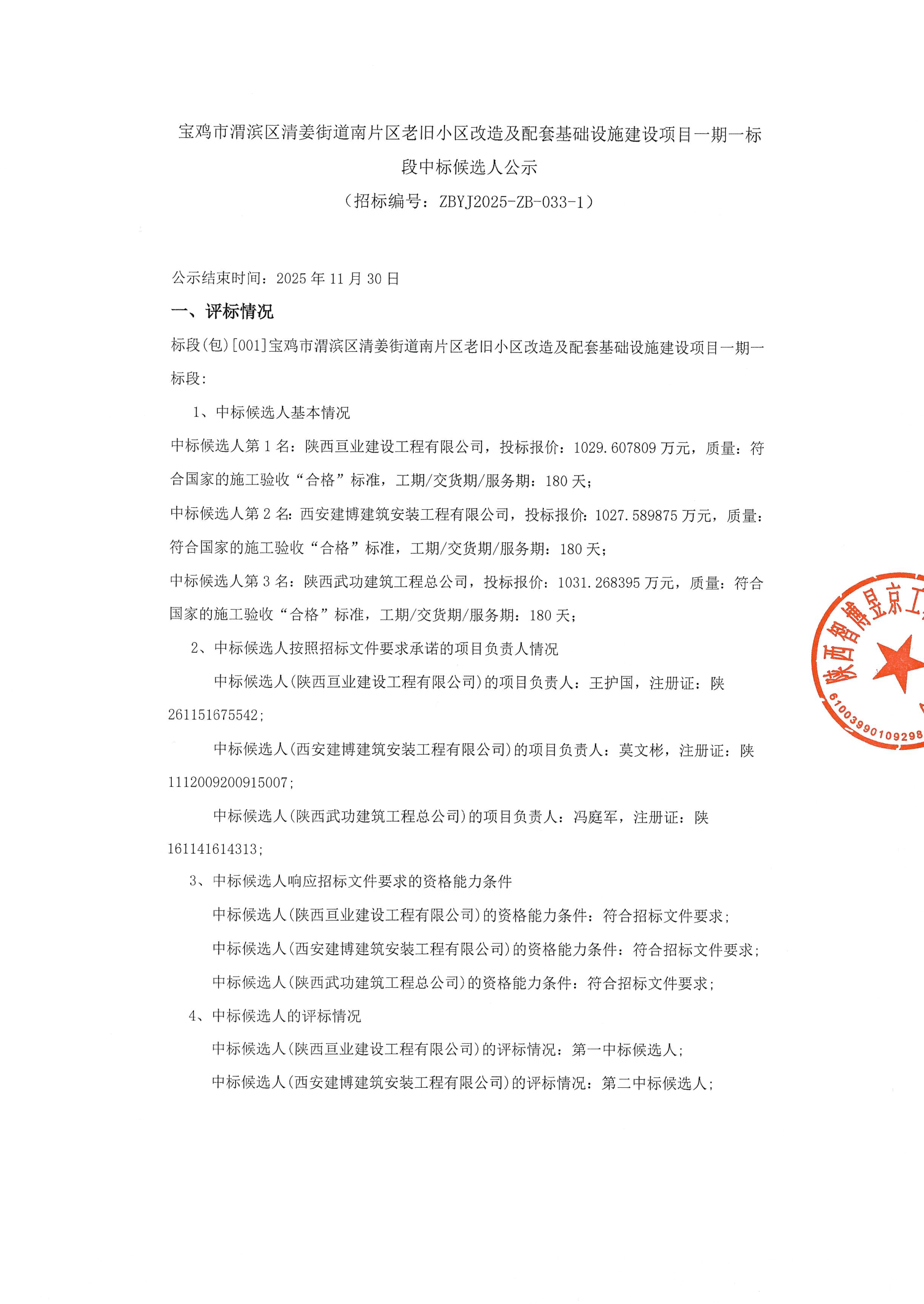 清姜街道南片区老旧小区改造及配套基础设施建设项目一期一标段中标候选人公示