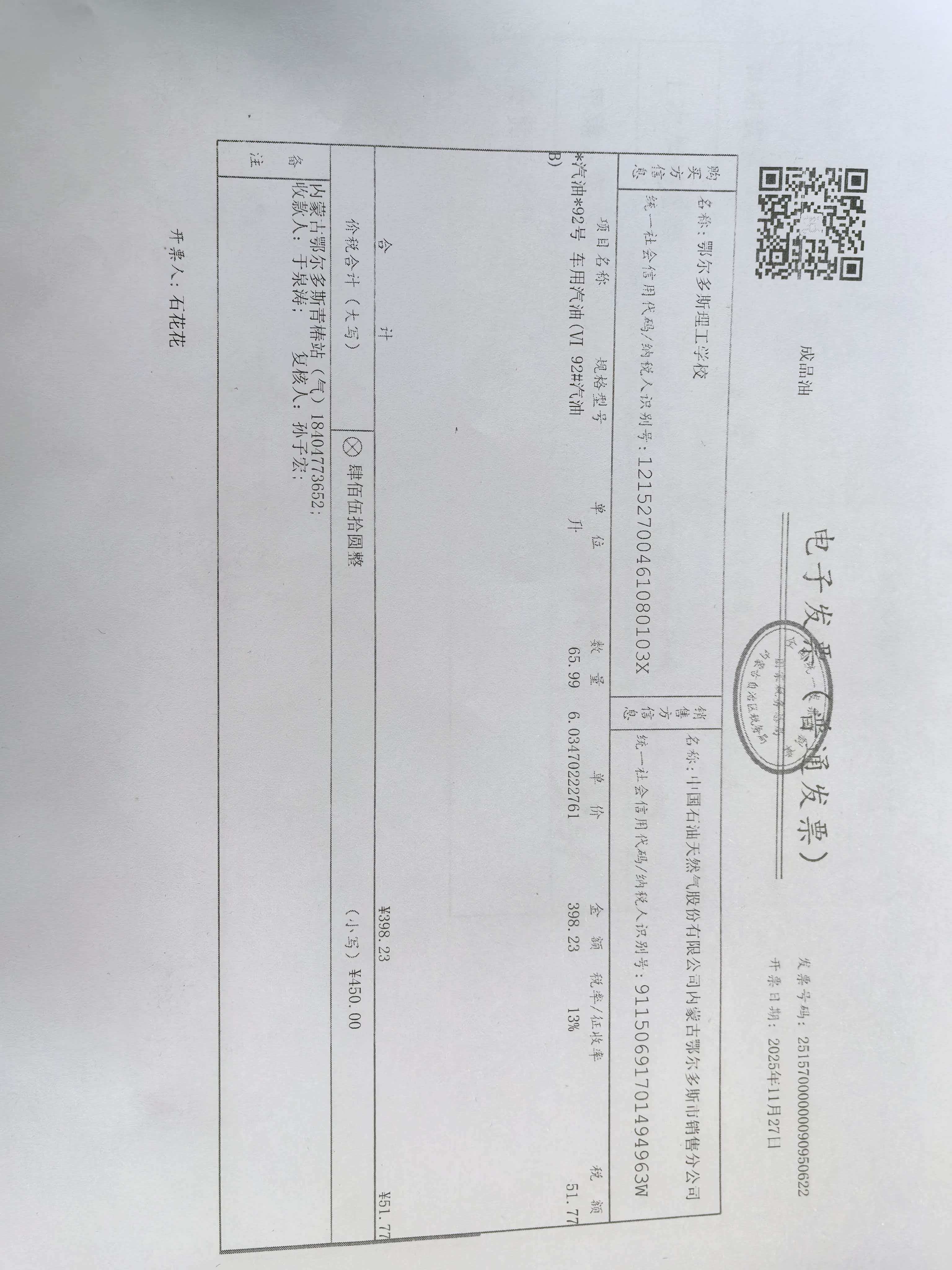 鄂尔多斯理工学校燃油费政府采购合同公告