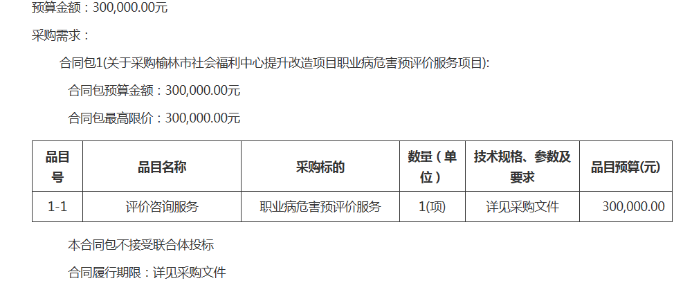 项目名称:关于采购榆林市社会福利中心提升改造项目职业病危害预评价服务项目(二次)