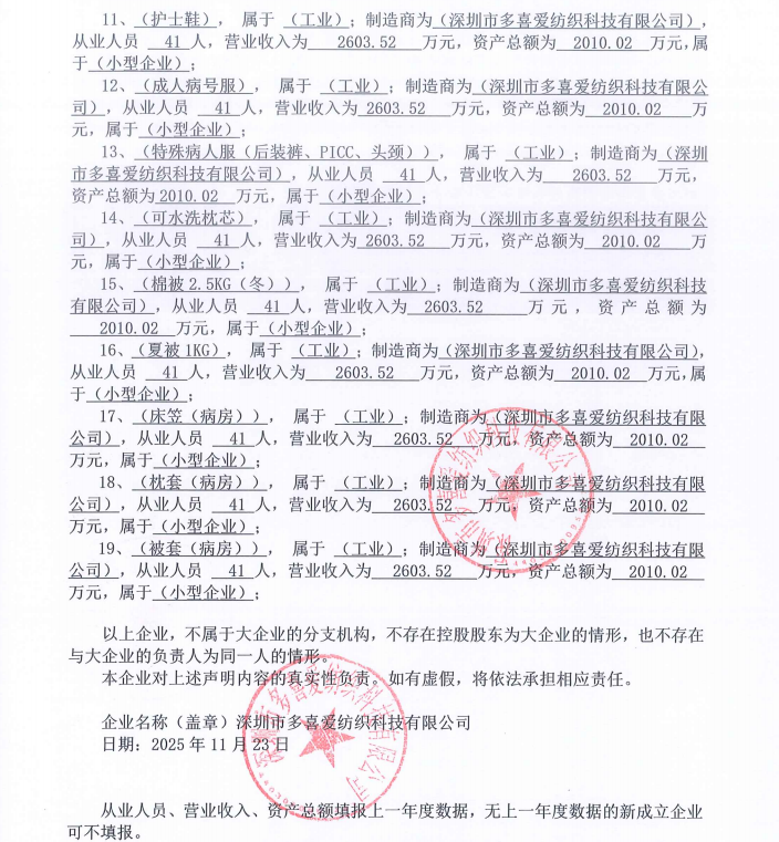 *.供应商名称:深圳市多喜爱纺织科技有限公司