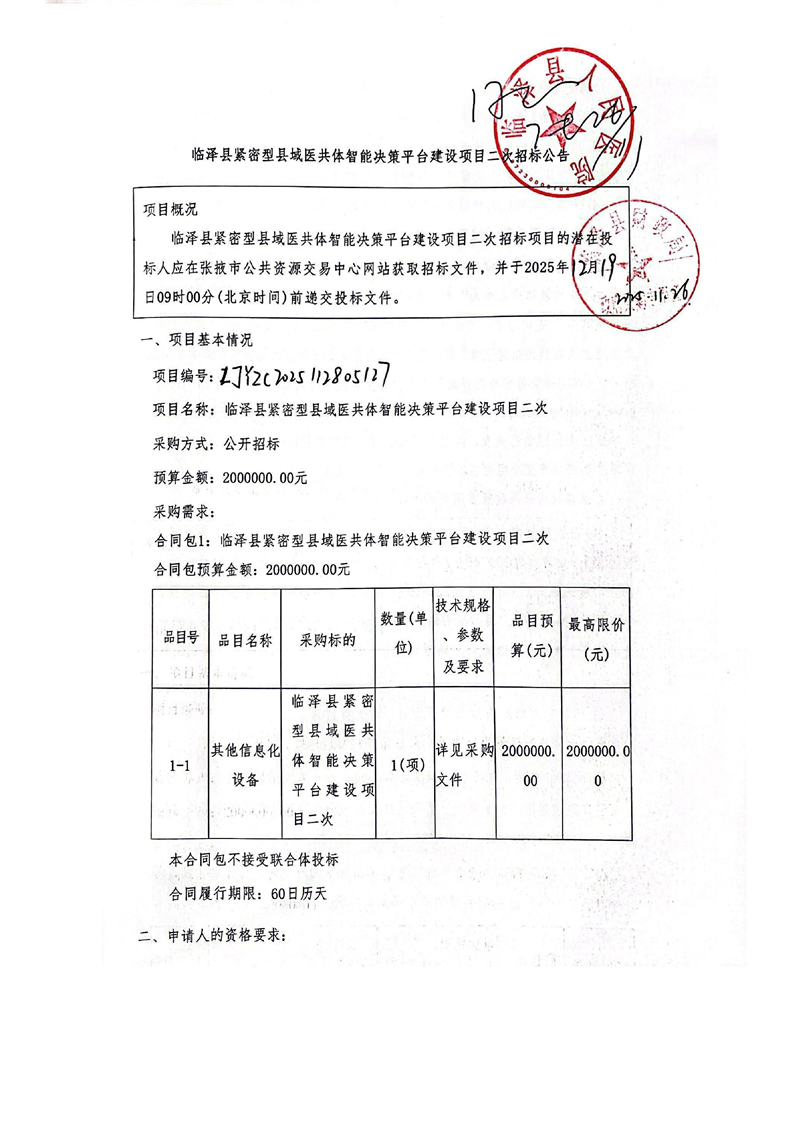 临泽县紧密型县域医共体智能决策平台建设项目二次{type}