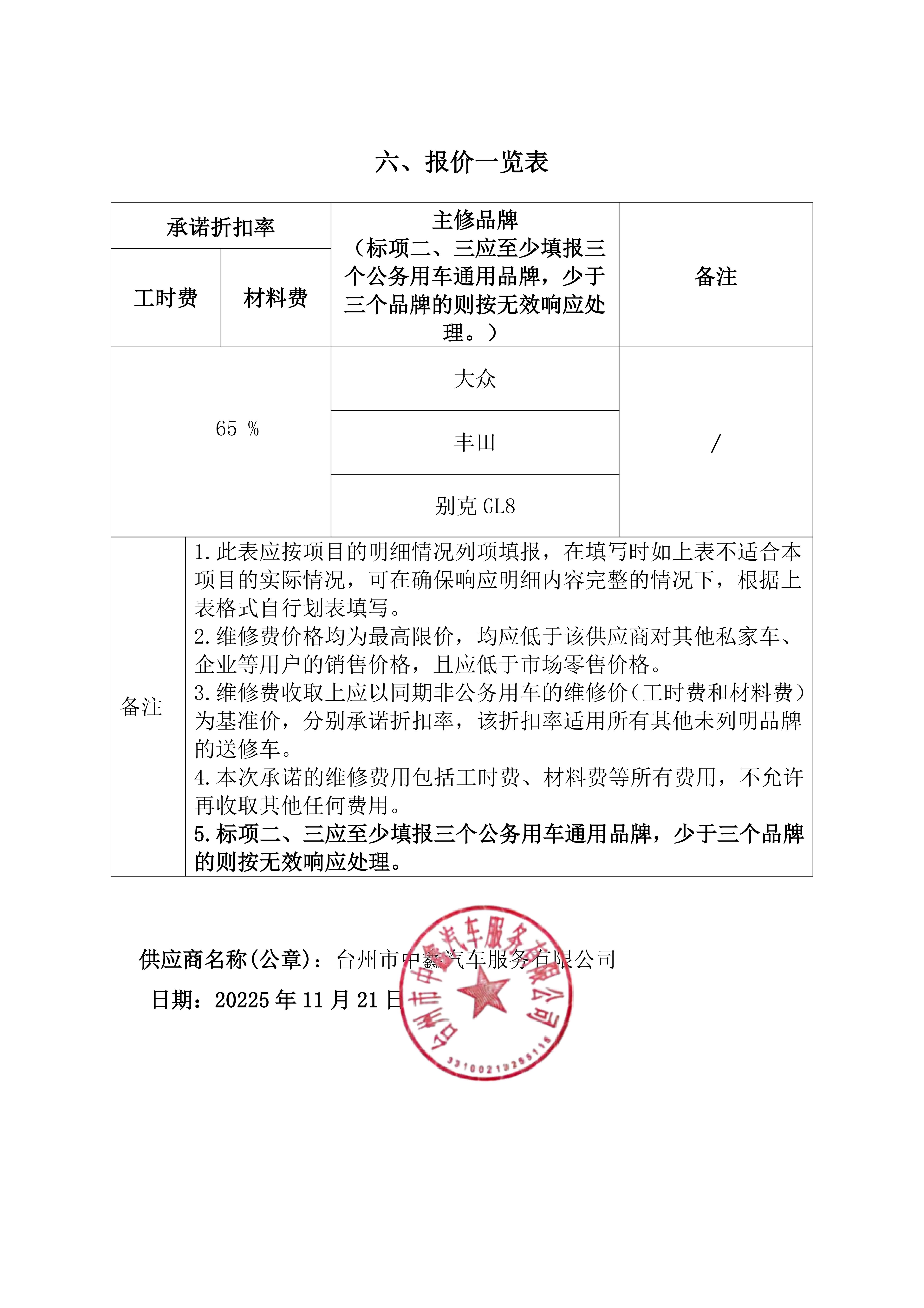 供应商名称:台州市中鑫汽车服务有限公司