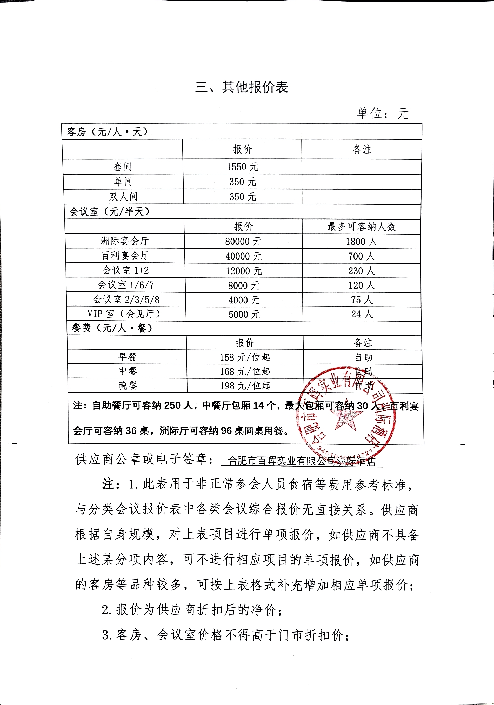 合肥市百晖实业有限公司洲际酒店*********年安徽省党政机关会议场所保障服务