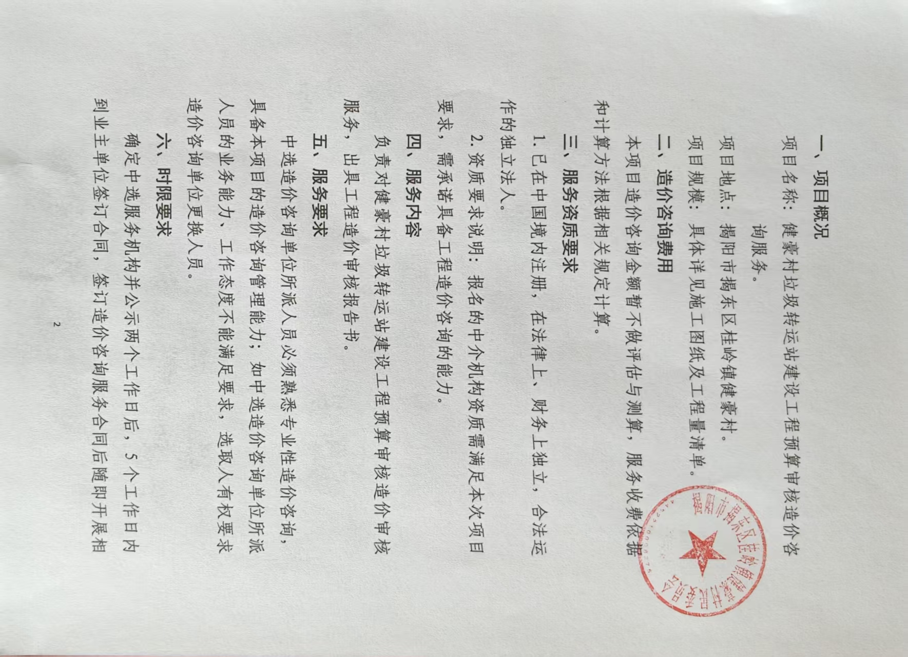 关于为【健豪村垃圾转运站建设工程预算审核造价咨询服务】公开选取【工程造价咨询】机构的公告